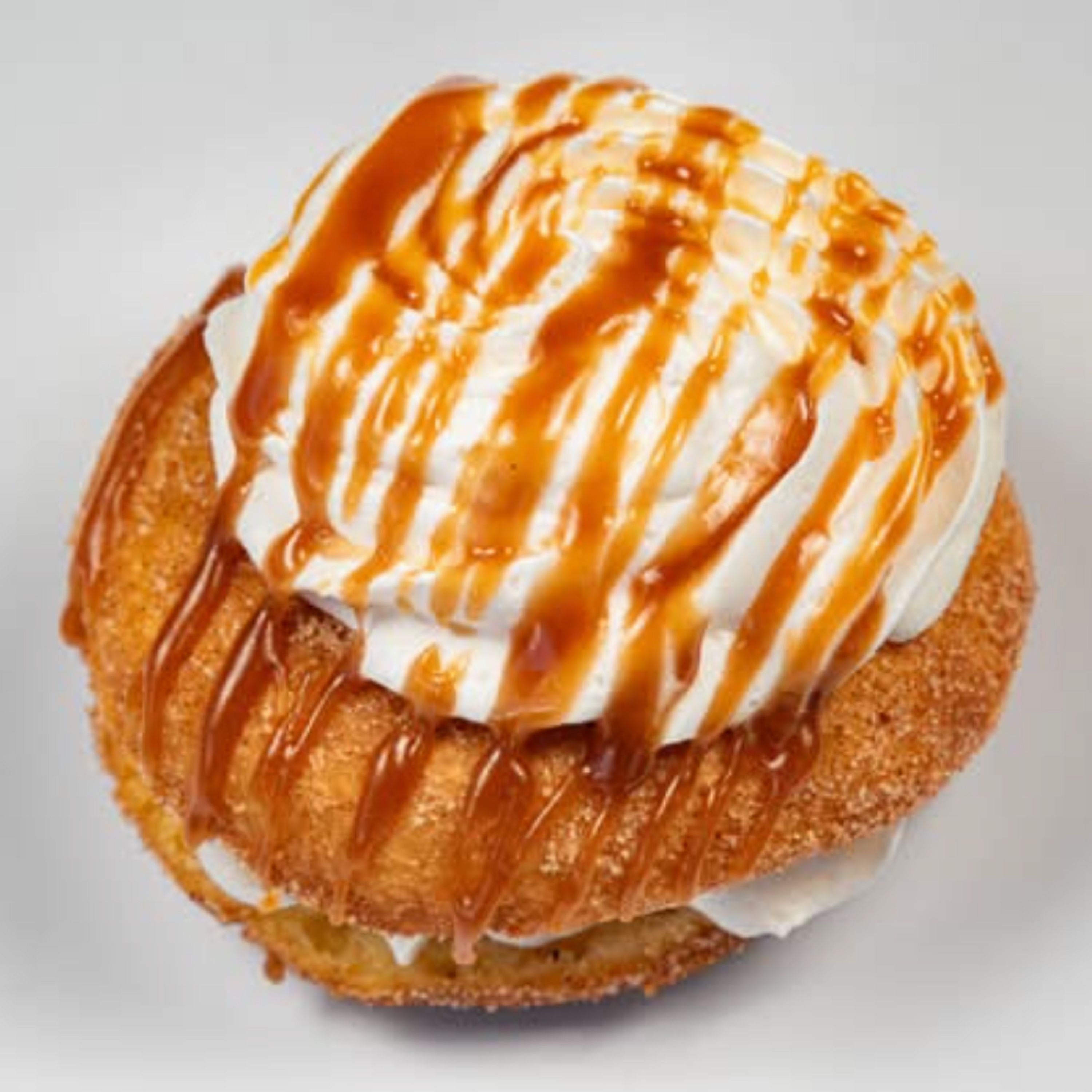 Vanilla donut, cinnamon sugar, whipped cream, caramel drizzle.