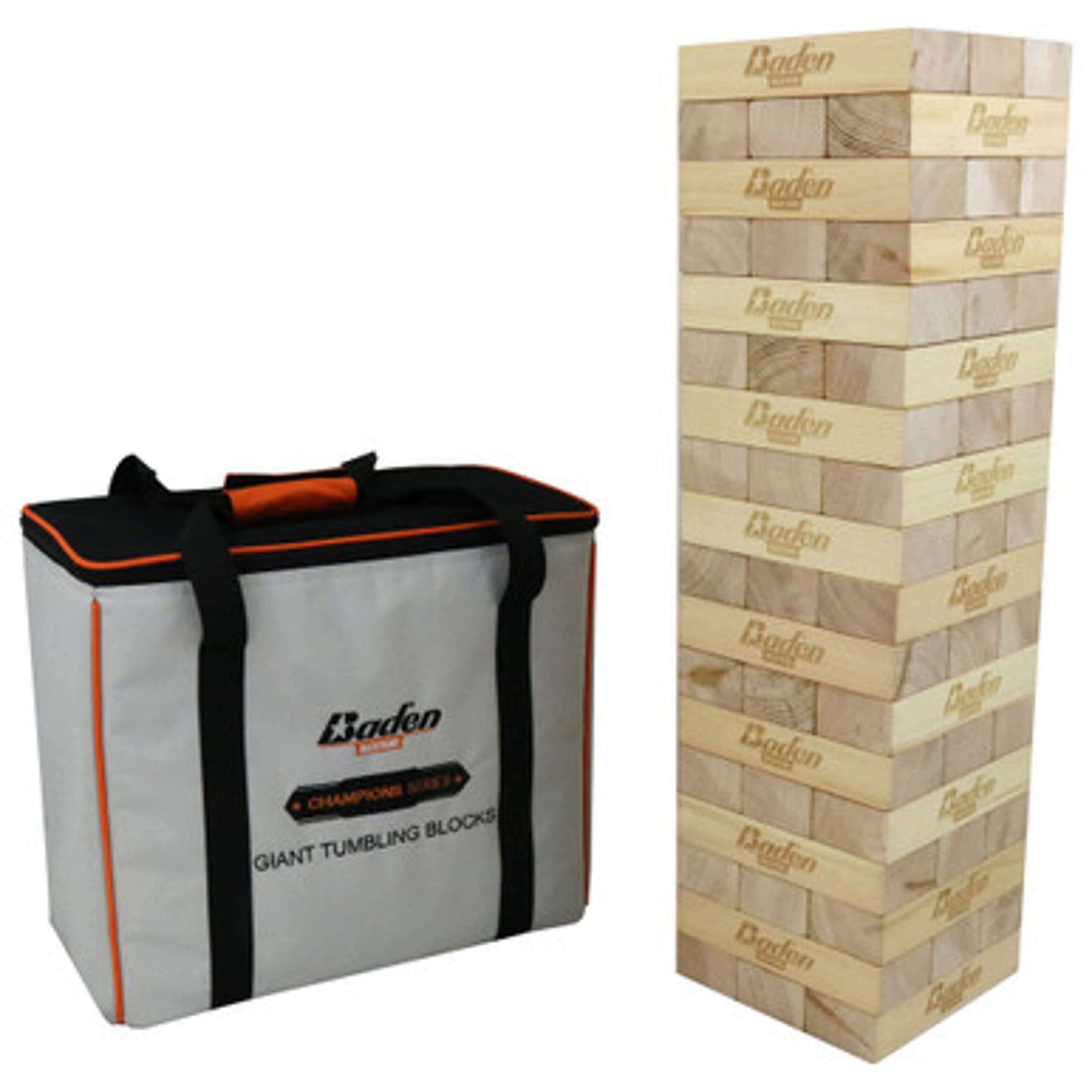 Baden s Giant Tumbling Blocks set includes 54 pine wood blocks measuring (7. 5 x 2. 5 x 1. 5 ) each. The block tower starts at 2 1 2 feet (18 rows) tall and grows to over 5 feet during gameplay. Blocks are made from hand-selected pine free of knots and imperfections for maximum durability and quality then sanded smooth for great playability. Set also includes a heavy-duty carry bag with reinforced sides to make packing and transporting easy. How to play Giant Tumbling Blocks: Pull blocks out of the tower and place them on top without the tower falling over. Challenge your friends to see who has the steadiest hands. Attributes: MPN: 85188595. Size: S. Color: brown. Gender: unisex.