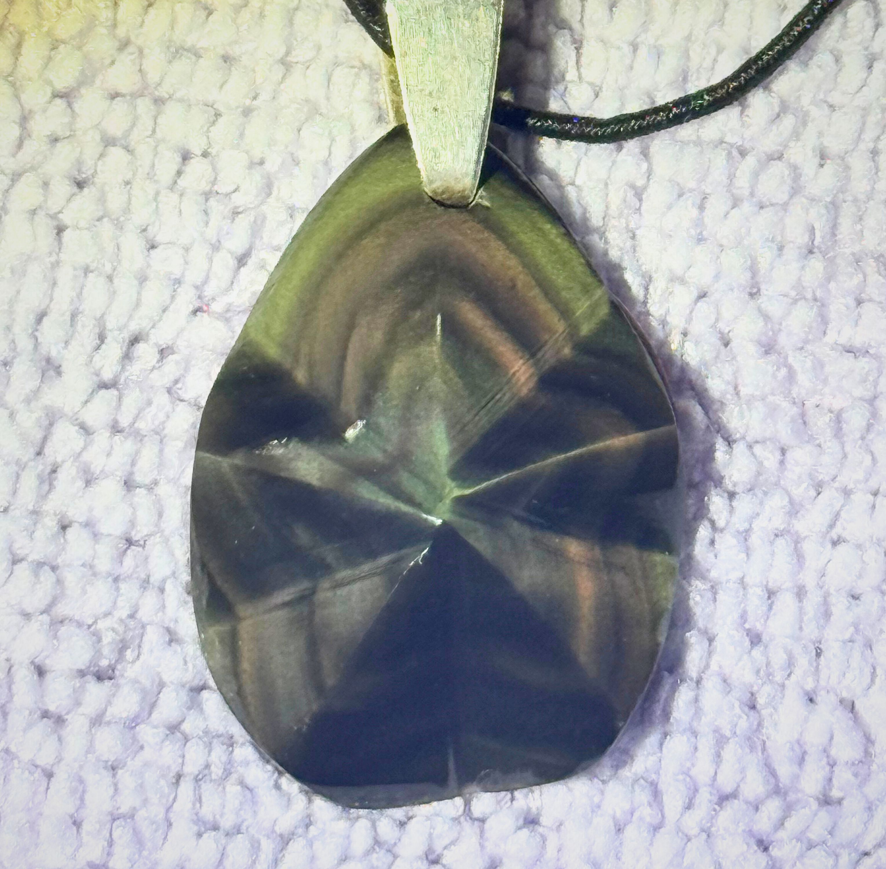 This stunning pendant is crafted from genuine Rainbow Obsidian, known for its protective energy and its ability to gently release emotional, physical, and spiritual blockages. Each piece reveals beautiful natural color bands that make every pendant truly unique. One of a kind and artisan-made in Teotihuacan, Mexico, this pendant is not just jewelry — it is a meaningful companion for grounding, protection, and inner clarity.