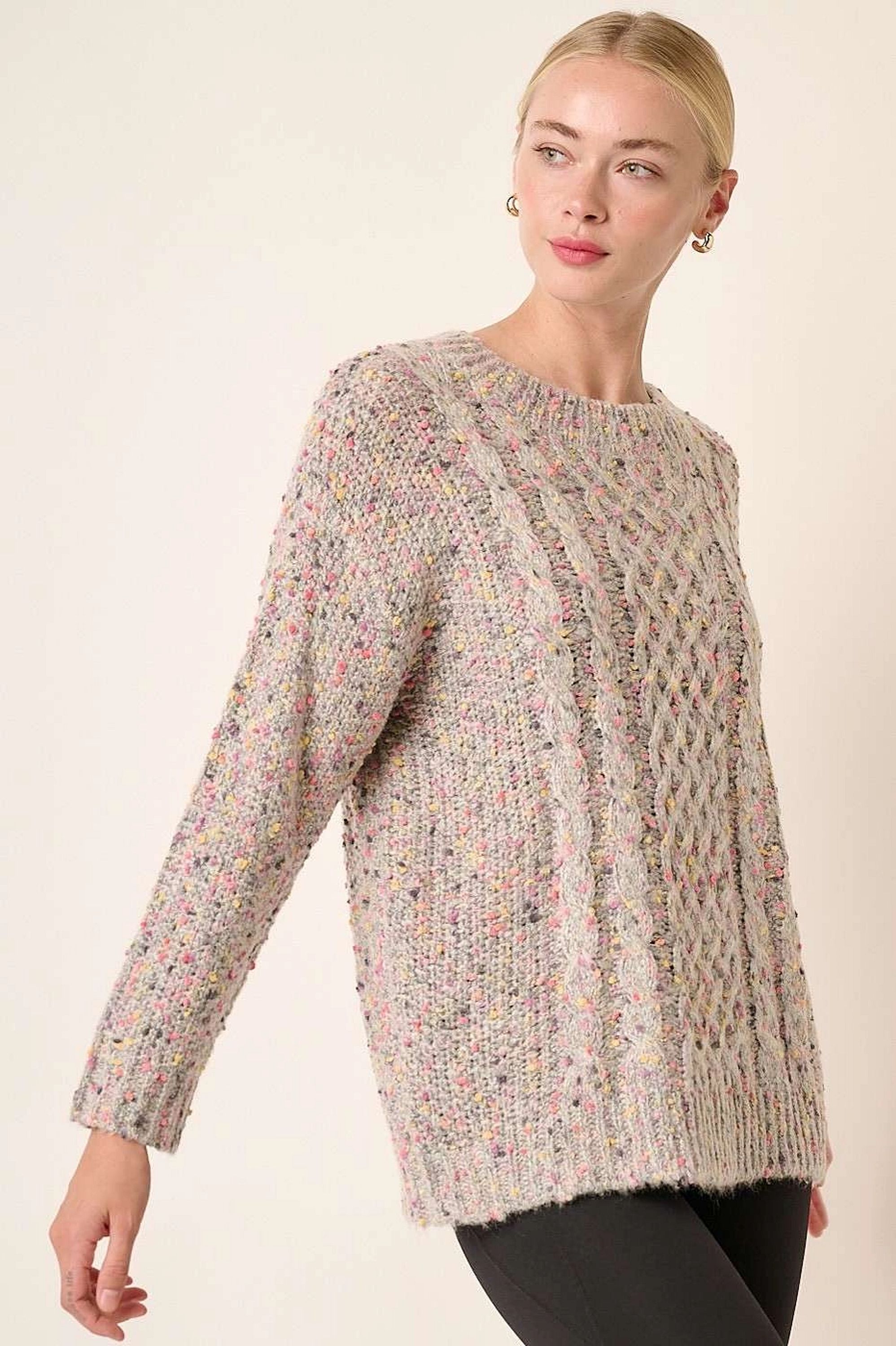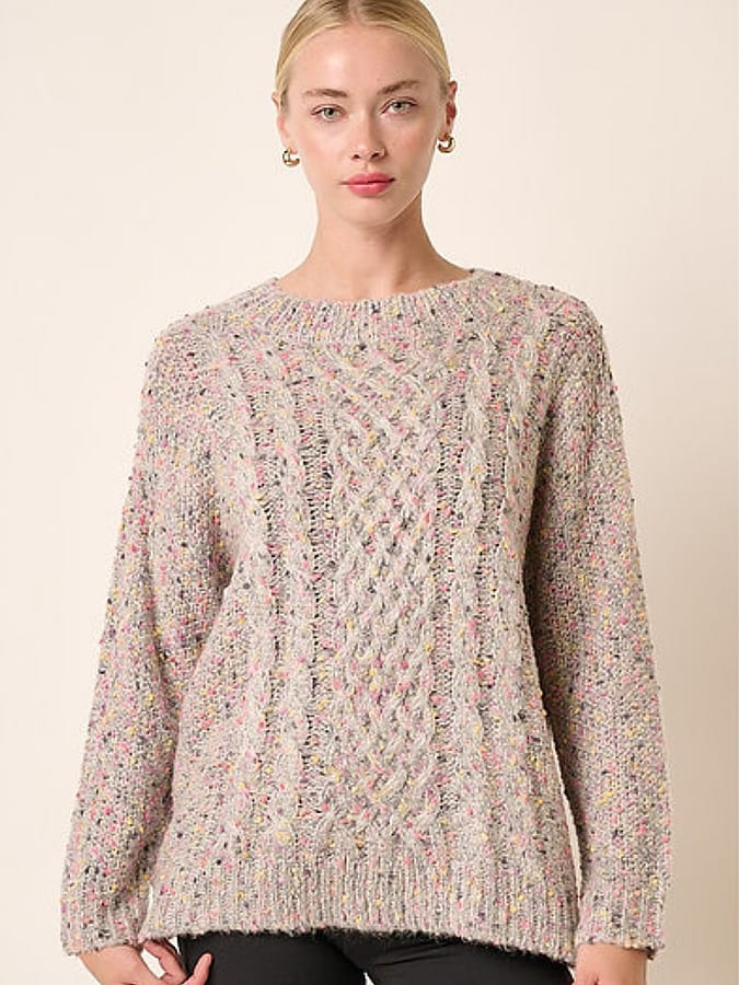 The Winter Confetti Cable Knit Sweater is equal parts cozy and cheerful. The cable-knit texture feels like classic winter, while the playful flecks add a pop of color that brightens up cold days. It’s soft, warm, and effortlessly cute — the kind of sweater you’ll reach for all season long with leggings, denim, or layered over a collared top.