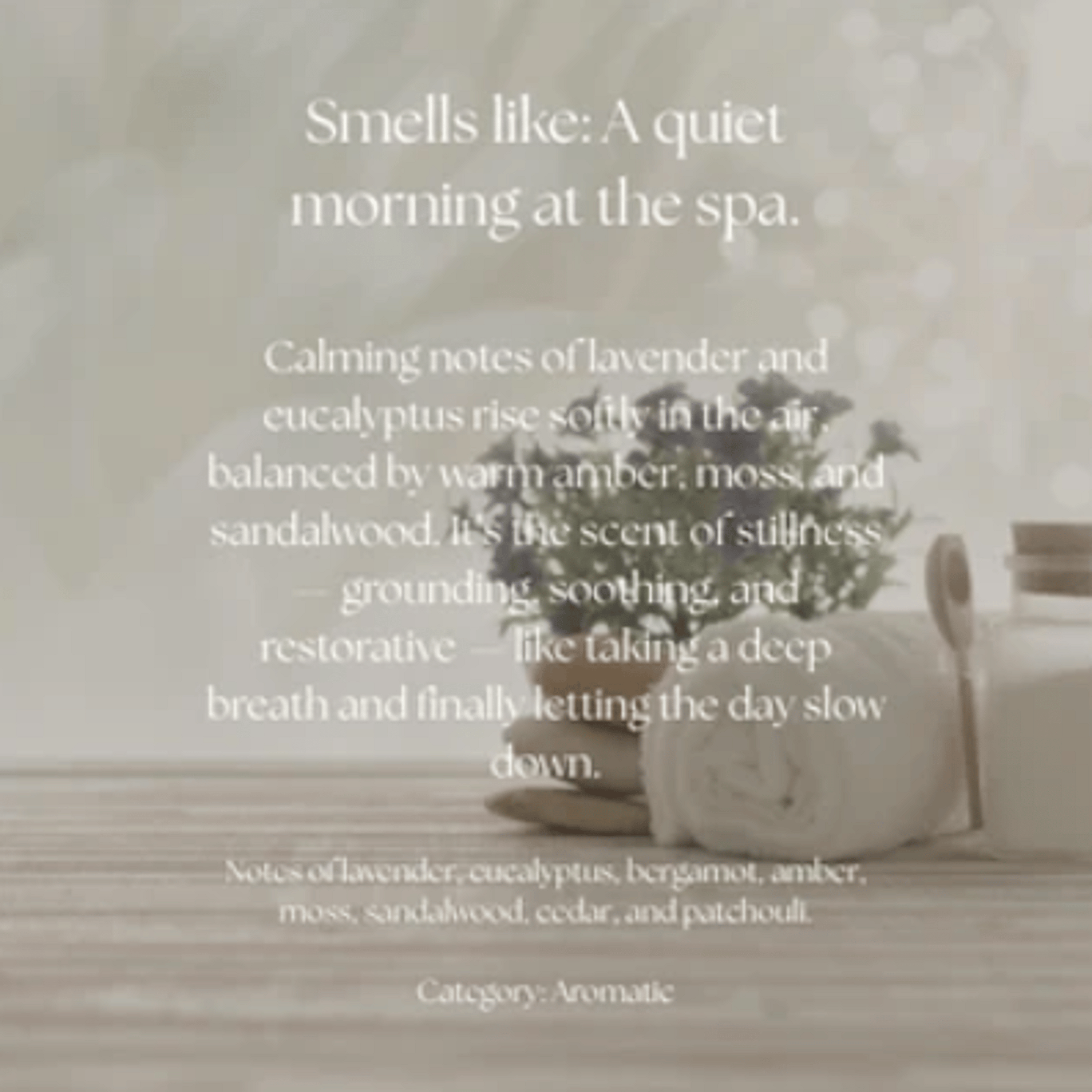 Scent Notes: Herbaceous Lavender, Eucalyptus, Bergamot, Amber, Moss, Sandalwood