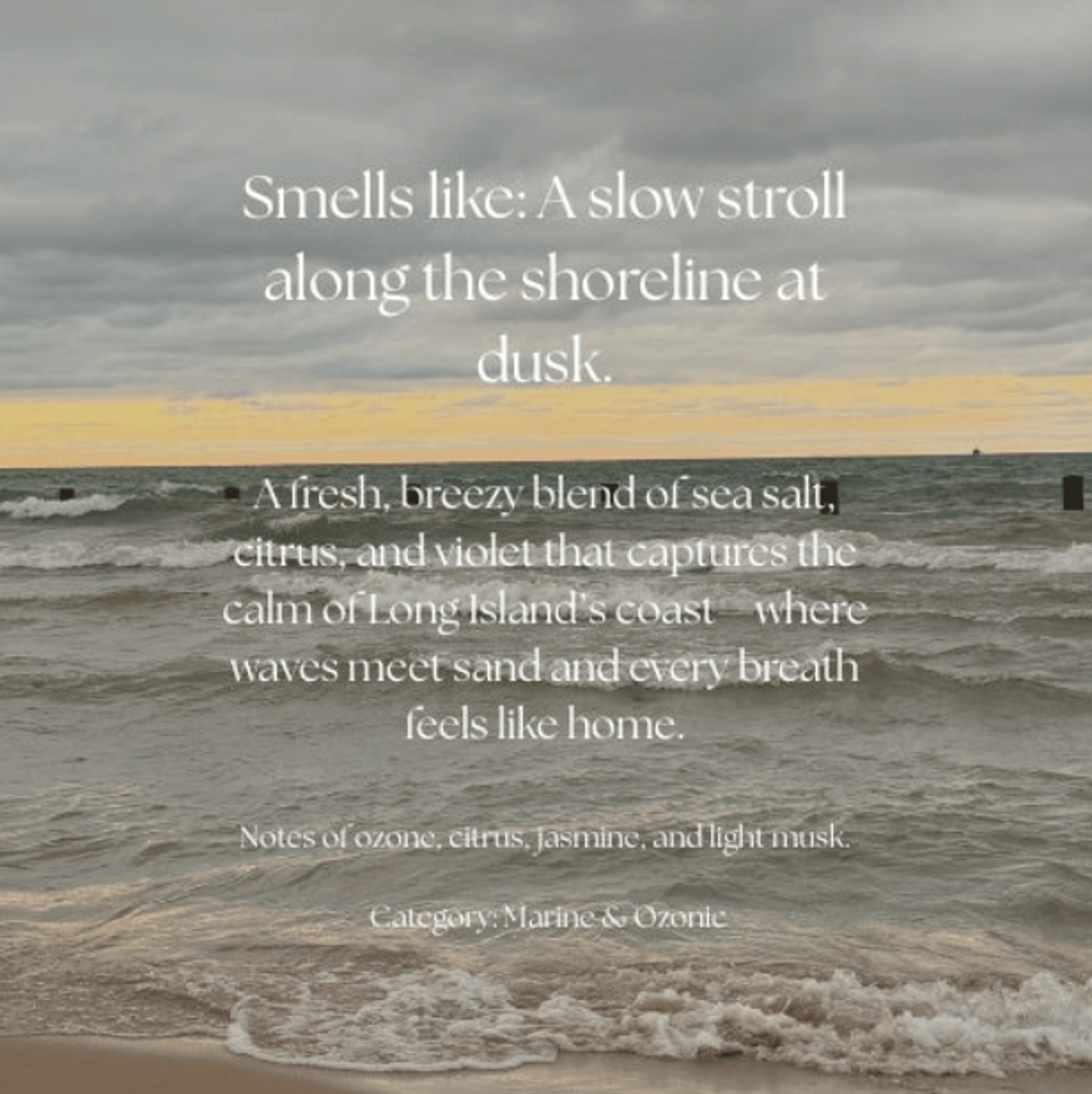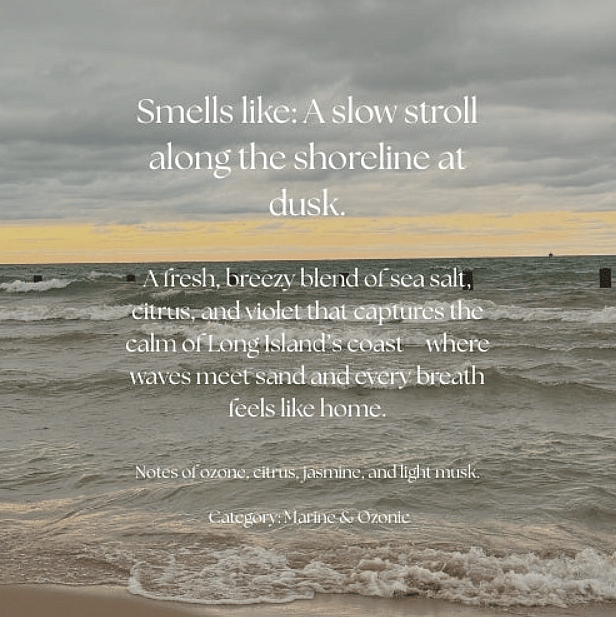 Scent Notes: Ozone, Citrus, Sea Salt, Jasmine, Light Musk, Powder, Violet, Cedar
