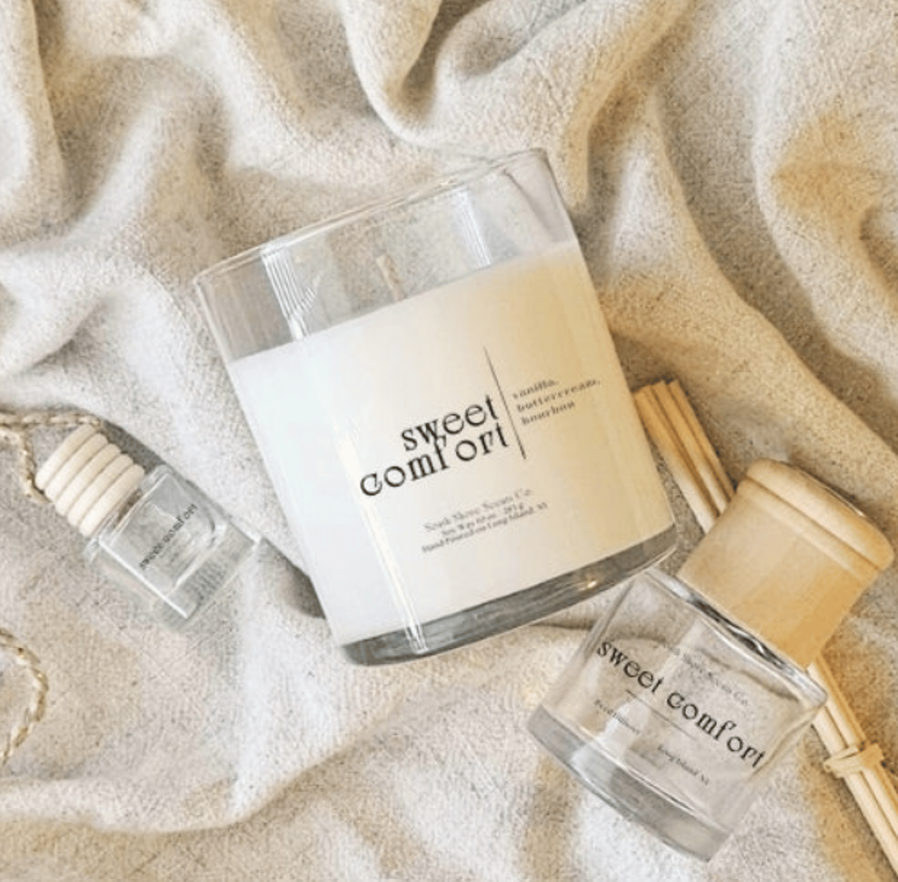 Sweet Comfort brings that cozy, nostalgic warmth to your space, wrapping you in the irresistible aroma of buttercream, golden vanilla bean, and a touch of bourbon.