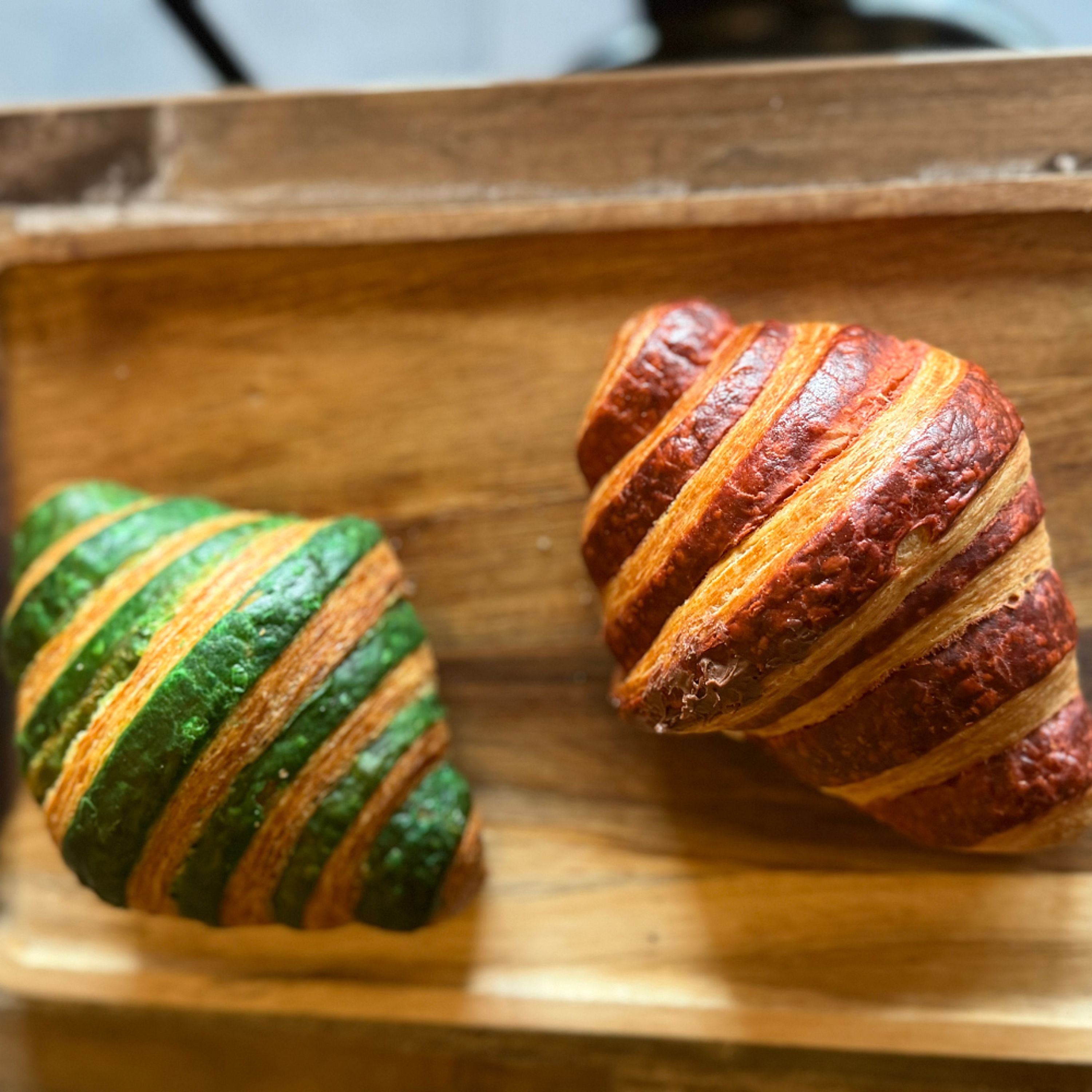 Flaky, buttery layers with filling options of chocolate, almond, Nutella, or pistachio. Plain option also available