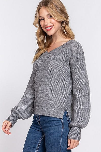 So soft it’s basically wearable comfort. The Cloud Knit V-Neck Sweater is a cozy essential you’ll reach for again and again—crafted in a plush, mid-weight knit that feels like a dream. Designed with a flattering V neckline and relaxed balloon sleeves, it’s perfect for casual days, coffee runs, or just staying in style without even trying. Comes in classic grey and timeless black to go with everything.