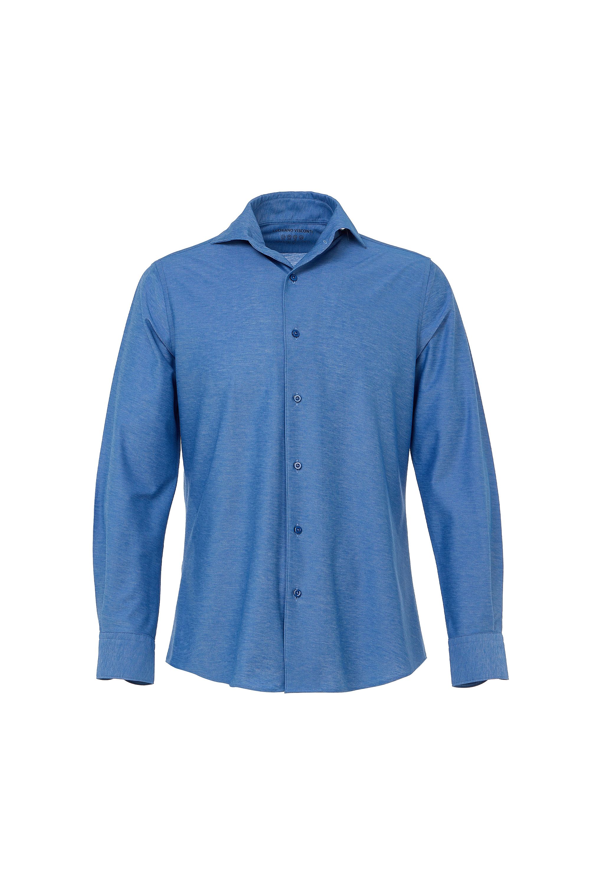 Upgrade your wardrobe with this indigo one-piece collar shirt, crafted for all-day performance and modern polish. made from a sustainable blend of 60% organic cotton and 40% recycled polyester, it features 6-way stretch for unmatched comfort and movement. Designed with moisture-wicking, non-iron, and quick air-dry technology, this shirt keeps you looking sharp with minimal effort. The sleek one-piece collar adds a refined touch, making it versatile enough for both work and evening wear. A must-have fall season essential that blends sustainability, performance, and timeless style.