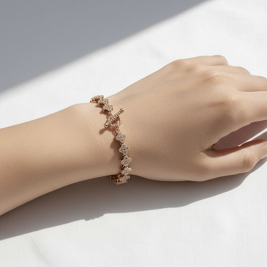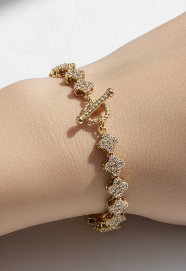 Bring elegance and sparkle to your wrist with this stunning clover bracelet adorned with brilliant cubic zirconia stones.