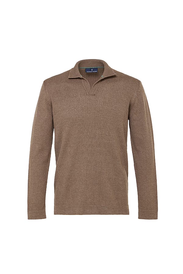 Elevate your everyday style with our johnny collar long sleeve polo, designed in a refined textured dobby stripe for a modern yet timeless look. made from a sustainable blend of 70% organic cotton and 30% recycled acrylic, this polo offers lightweight comfort with and eco-conscious edge. The open johnny collar adds a relaxed touch, while the long sleeves make it versatile for layering or wearing on its own. perfect for casual days, evenings out, or polished weekend wear. 70% organic cotton 30% recycled acrylic