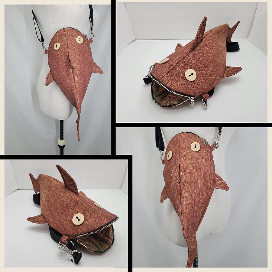 UnNaked Ape's wildly popular shark bag design, now available as a cross-body shark purse! Elegant, debonaire, hella sick, dude. Sized just right to hold your phone, wallet, keys, and a few other essentials. Ditch the frumpy tote bags at home and sport an aquatic style!