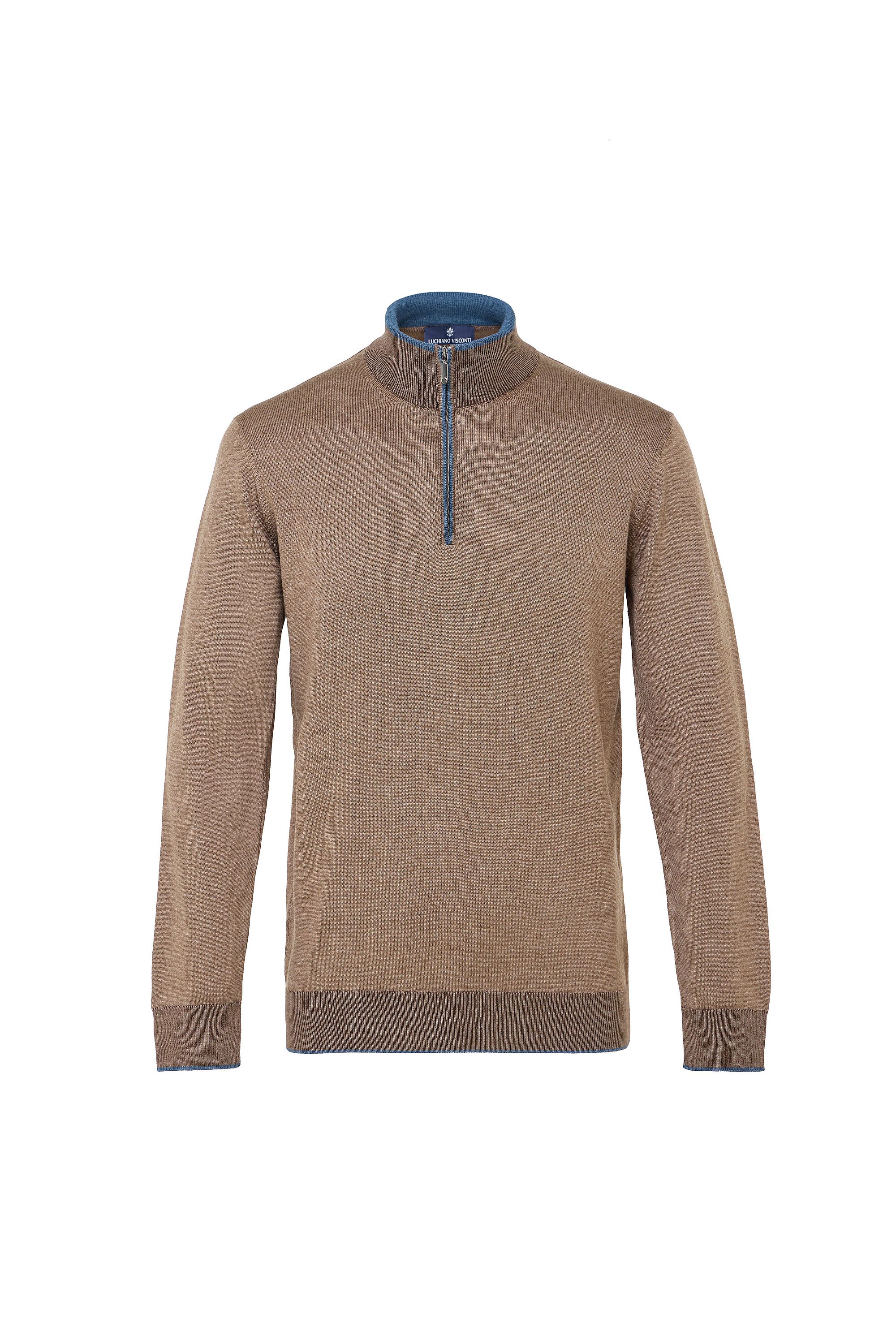A clean, modern quarter-zip that dresses up or down with ease. knit from a soft, breathable blend of 70% organic cotton and 30% recycled acrylic, it delivers everyday comfort with better-for-the-planet fibers. The banded cuffs and hem keep the silhouette neat, while the contrast trim and subtle piping add a refined pop of detail. zip it up for a polished look or wear it open over a tee or button-down—your go-to layer from workdays to weekends. 70% organic cotton 30% recycled acrylic