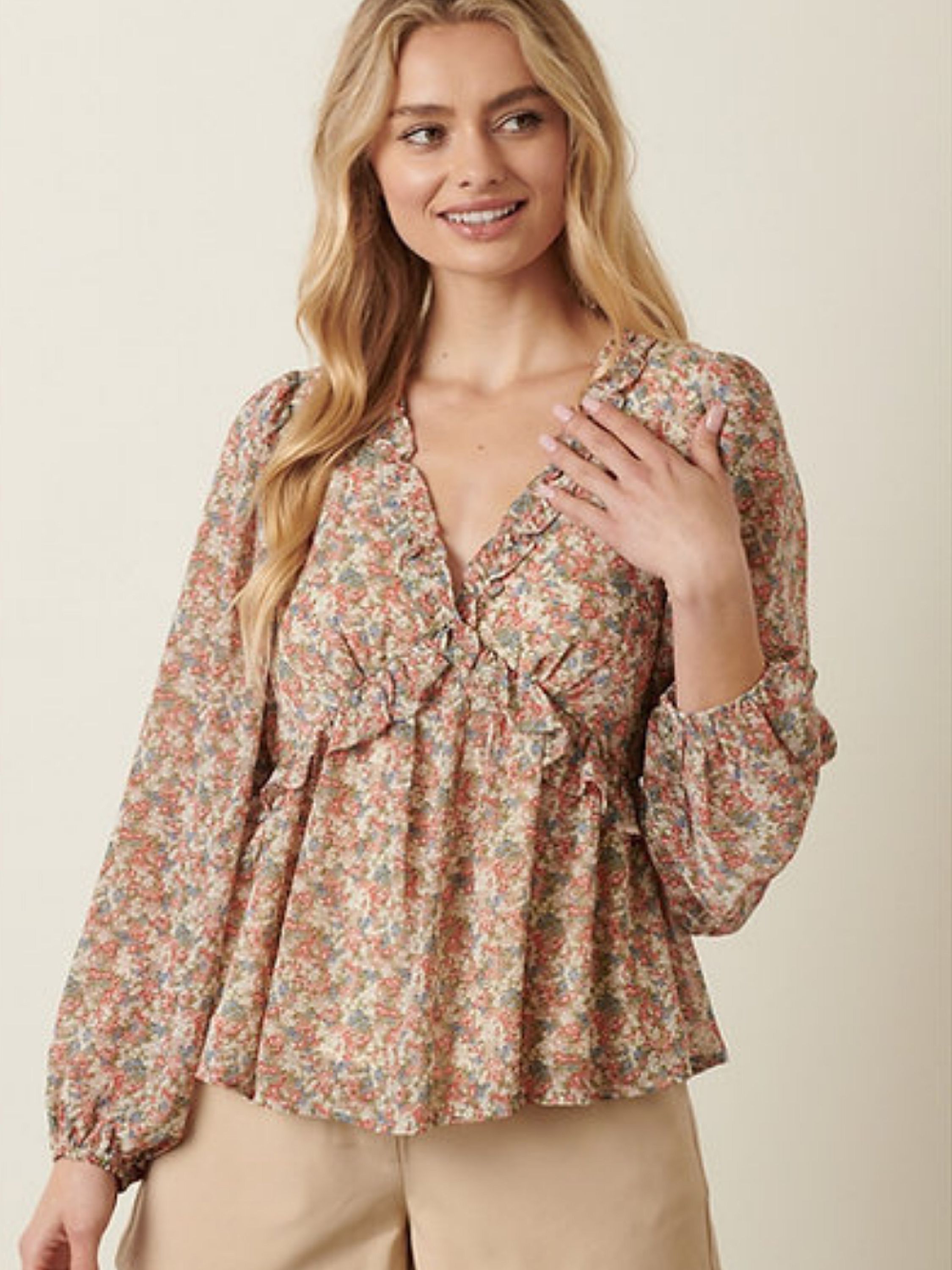 With its flattering shape and romantic florals, this blouse is your new go-to for fall evenings out. Dress it up with trousers and heeled boots for date night or pair it with faux leather for a girls' night look that turns heads.