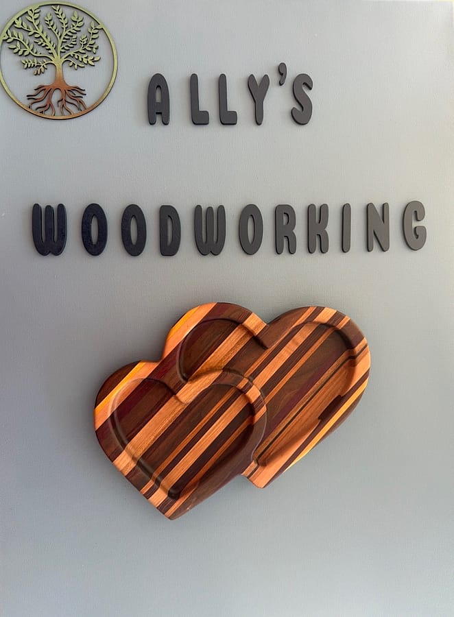 Love at first bite! Double heart bowl, crafted with mixed exotic wood. 9 x 14 inches #homebodyli