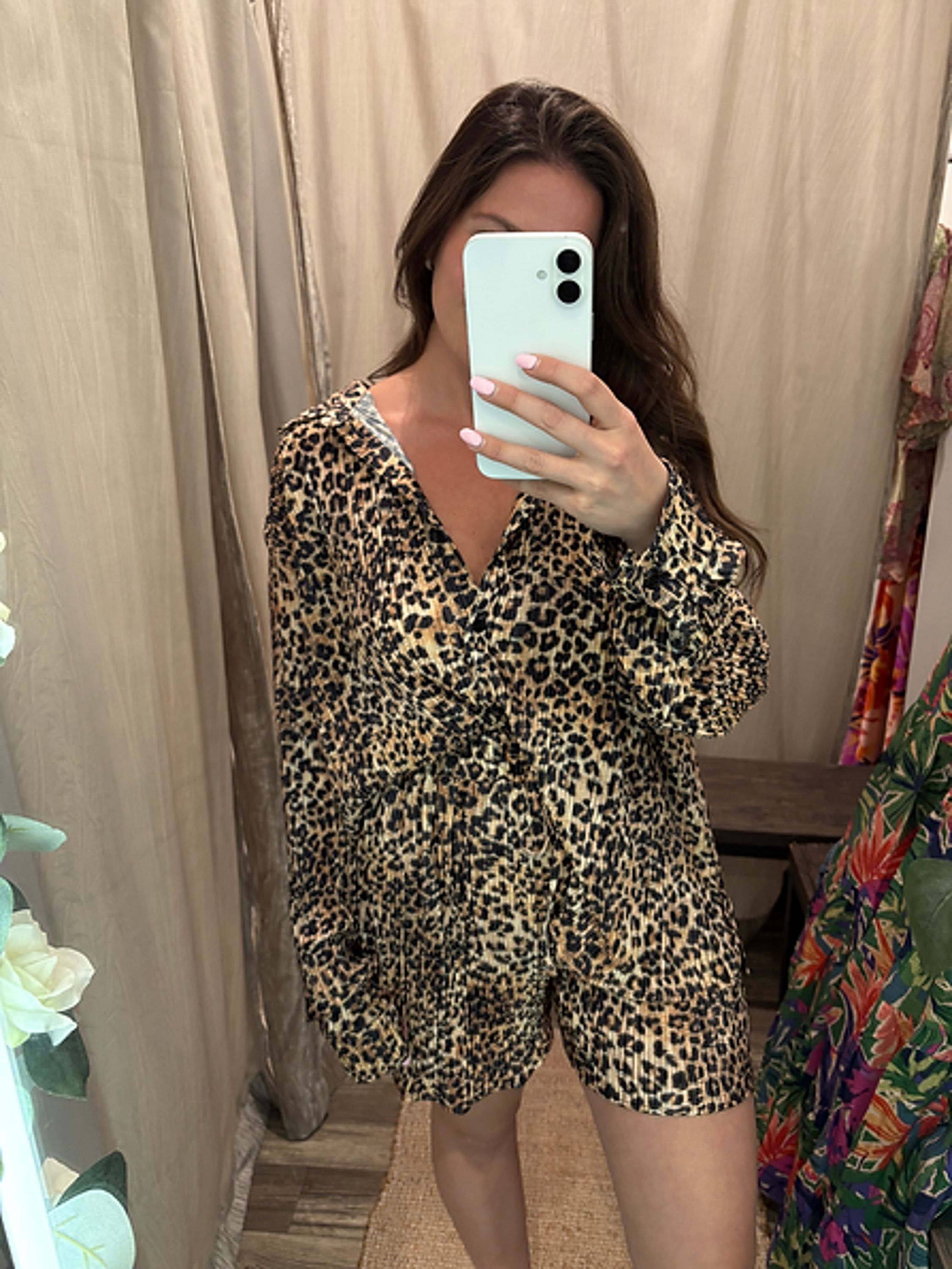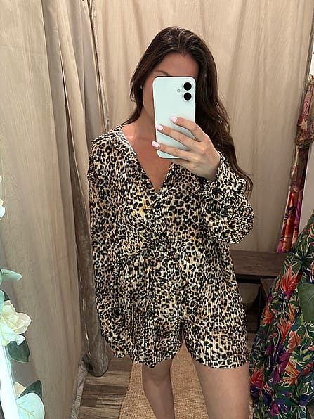 The Wild Thang Short Set offers both comfort and bold style with its plisse pleated blouse and chic leopard print. The coordinated look of the blouse and matching shorts makes it easy to create a trendy, effortless outfit. Whether you’re dressing it up for a night out or wearing it casually during the day, this set elevates your wardrobe with fierce, fashionable appeal.