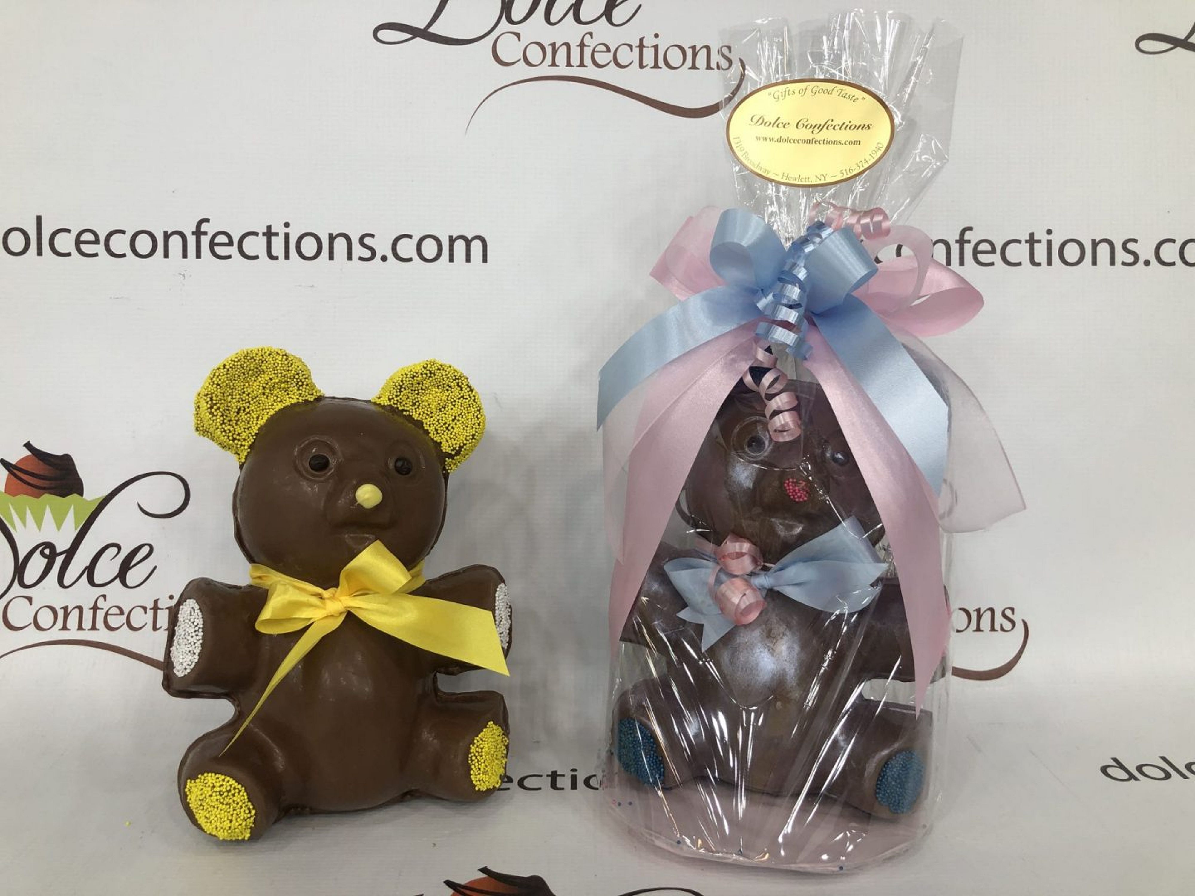 Have fun guessing or revealing the gender of the baby with these chocolate bears filled with candies! Each bear measures 6″ wide x 9″ tall and contains approximately 1lb. of boy, girl or gender-neutral candies! Comes with wooden mallet.