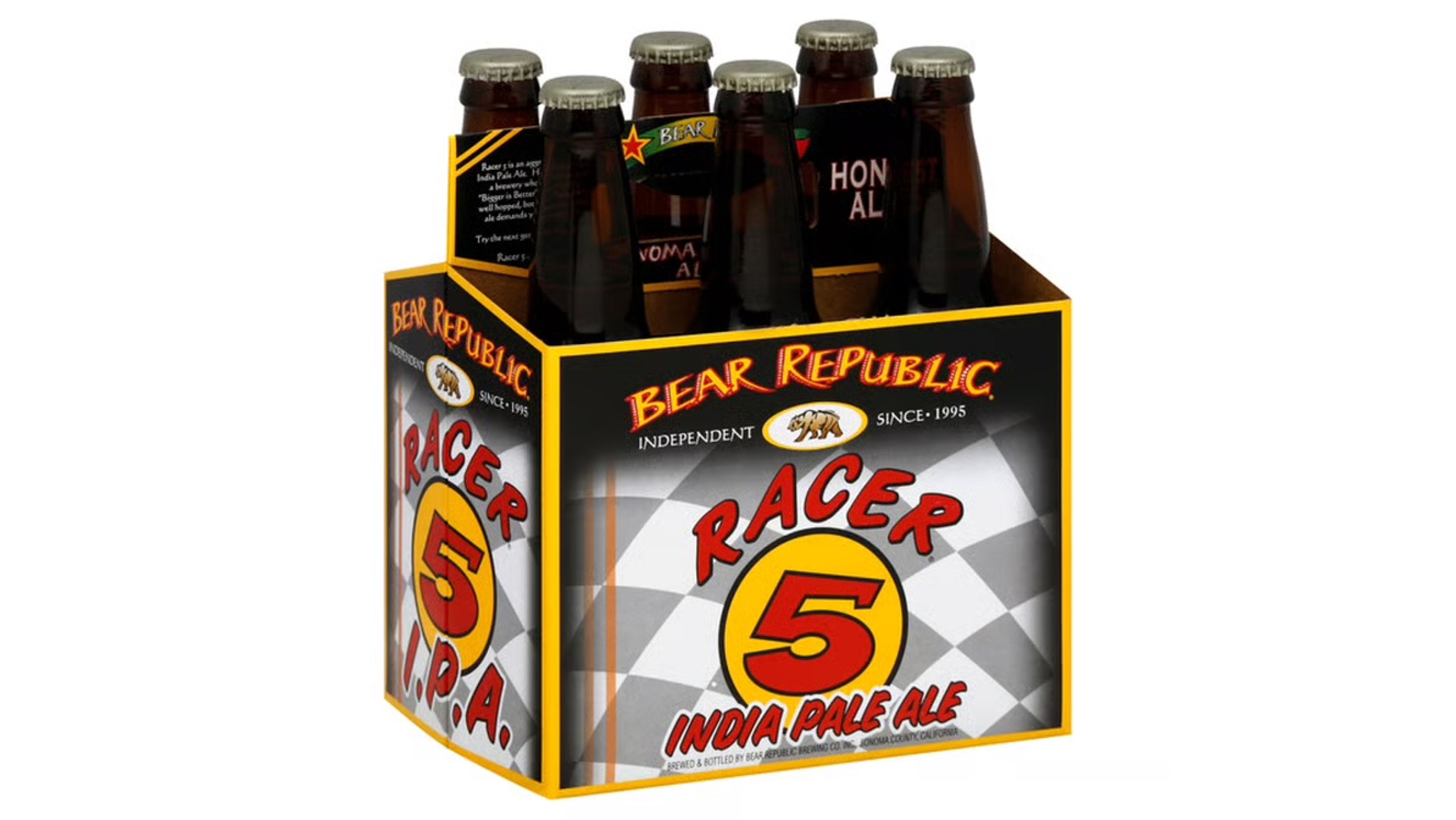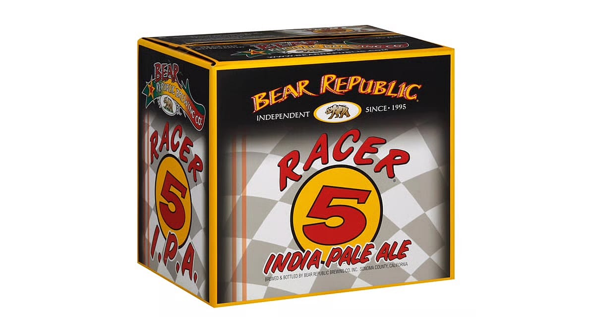 Independent since 1995. Racer 5 is an aggressive styled Indian Pale Ale. Handmade from a brewery whose motto is Bigger is Better. This golden, well hopped, bottle conditioned ale demands your attention. Try the next generation of I.P.A. Racer 5. Go. Go. The Norgrove family founded Bear Republic Brewing Company to produce only the finest ales and lagers. Visit us in historic Sonoma County, California, where hop kilns from another era are still visible. Enjoy our handcrafted award-winning ales as we continue to work hard fostering a sense of loyalty and tradition from eras gone by. Sonoma County Ales. 7% Alc. by vol. Brewed and Bottled by Bear Republic Brewing Co. Inc., Sonoma County, California.