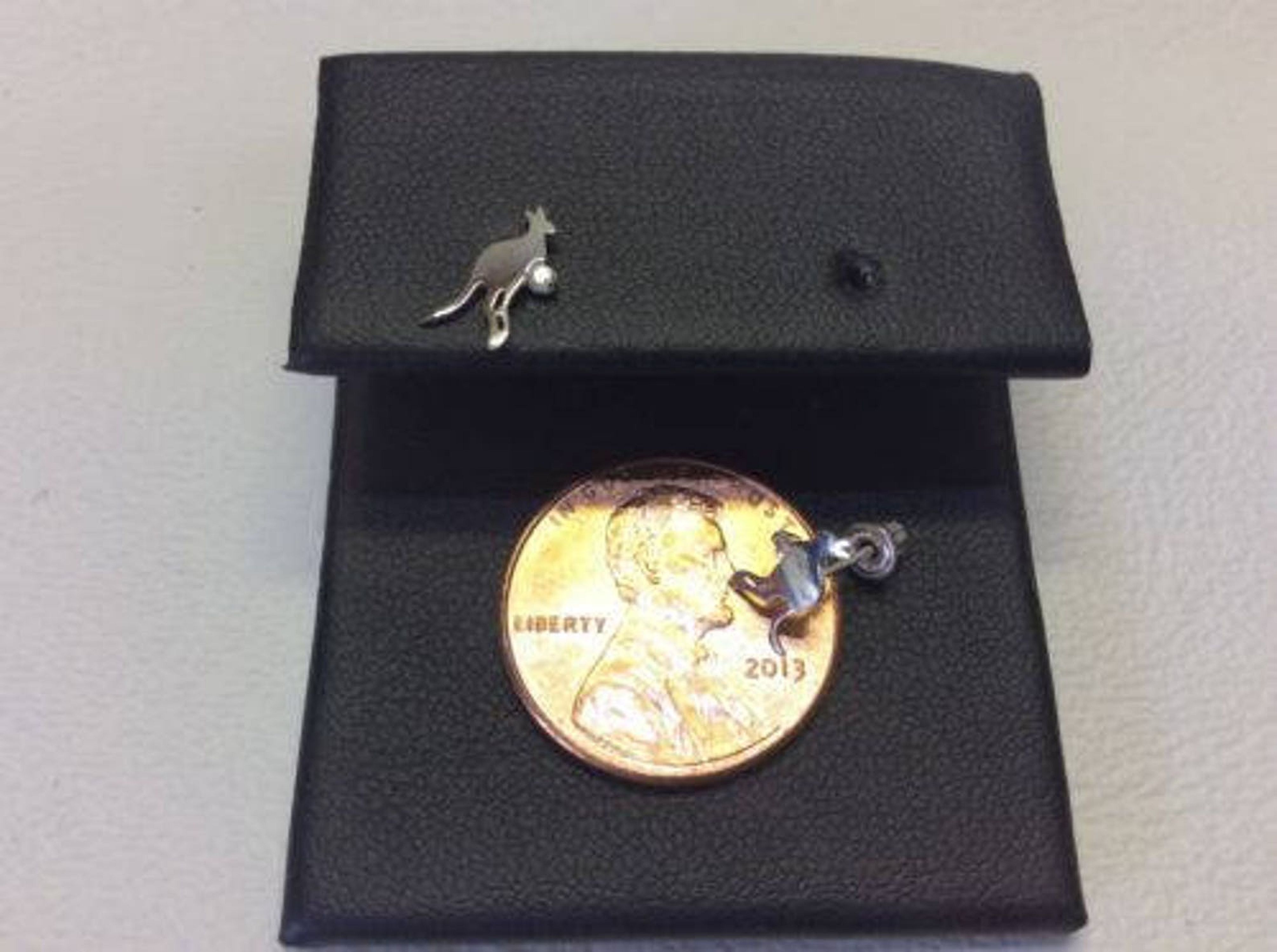 14k Yellow/White gold Kangaroo CZ stone stud Screwback safe children earings