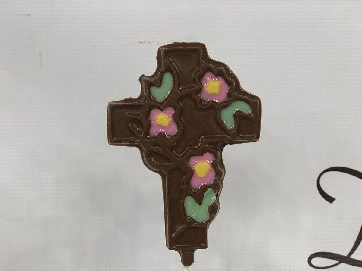 Communion/Baptism Pops - Cross With Flowers / Boy / Dark/Pareve