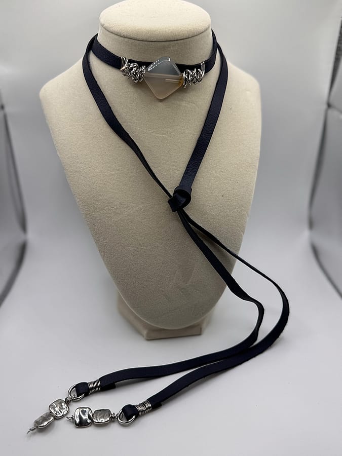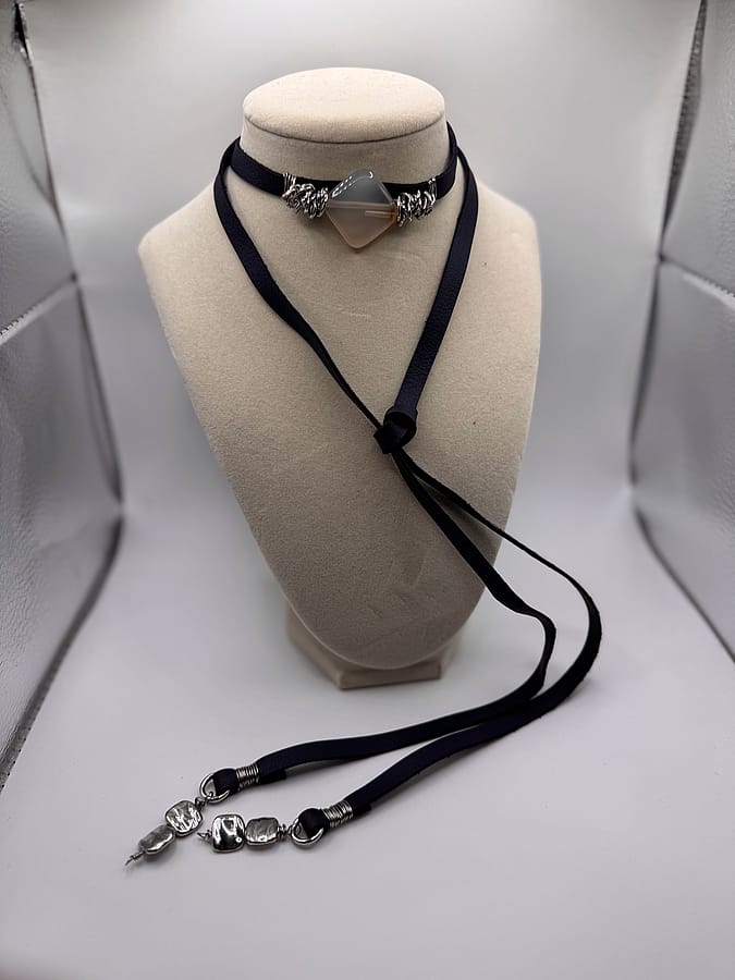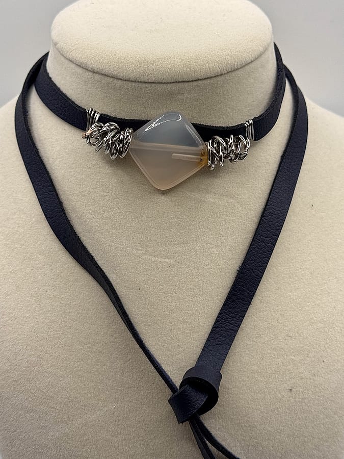 This transparent agate choker showcases a naturally luminous stone that catches the light with subtle, organic beauty. Minimal and modern, it adds an effortless touch of elegance to any layered or standalone look.