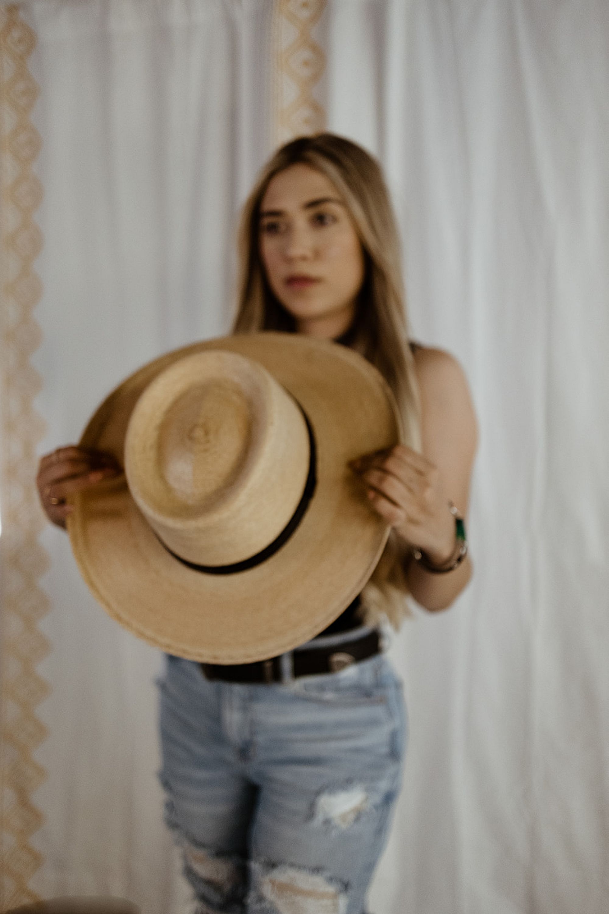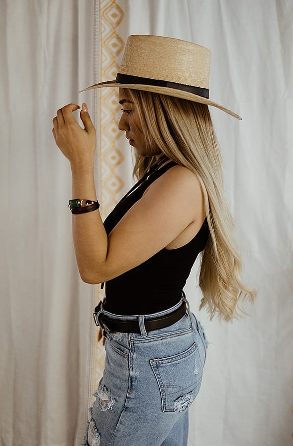 This horneado-style hat features a distinctive black stripe, blending traditional craftsmanship with contemporary flair. Lightweight and stylish, it’s perfect for adding a unique touch to any outfit while keeping you comfortably shaded.