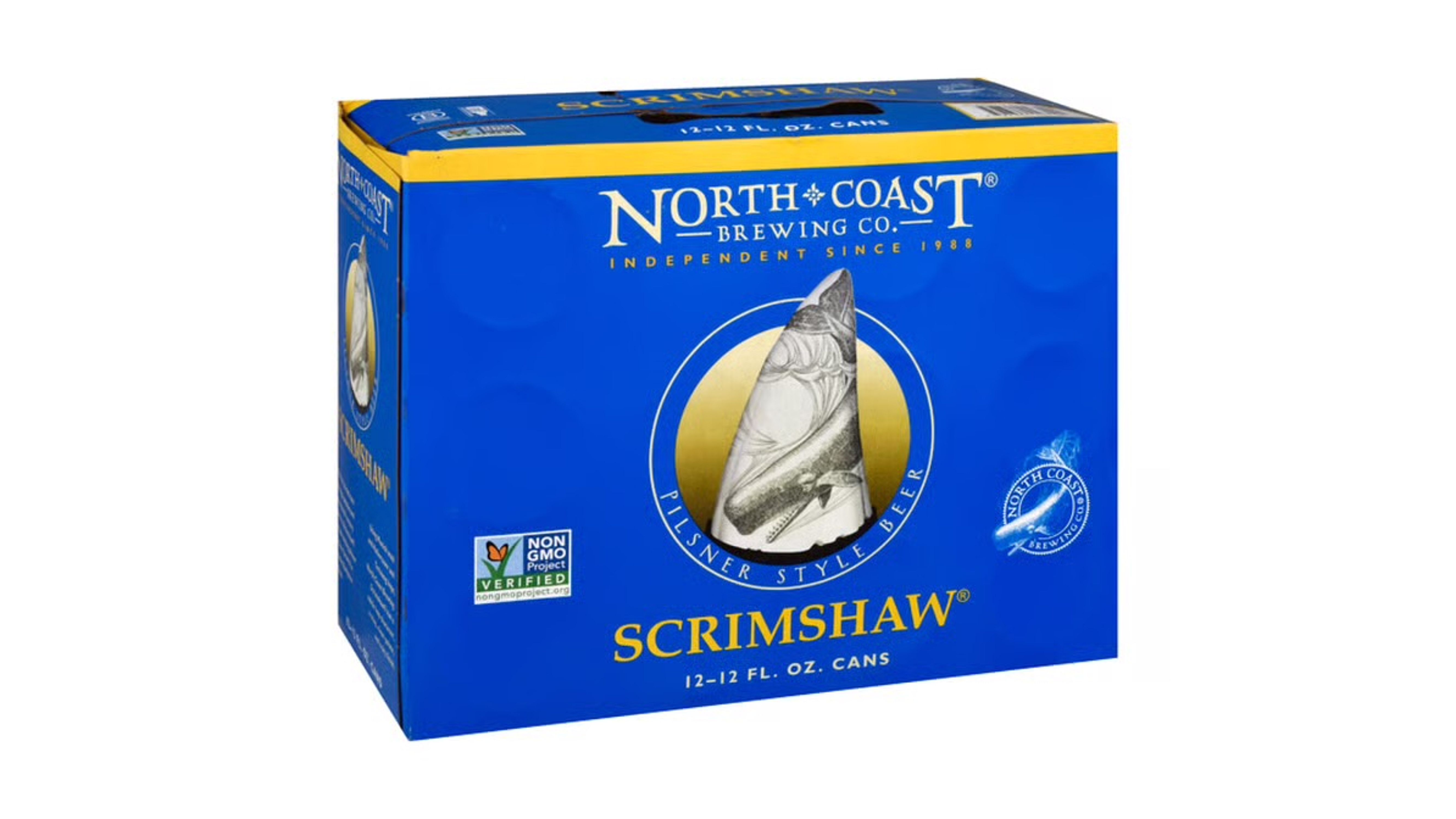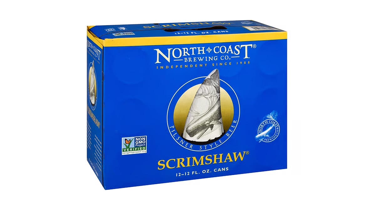 Pilsner style beer. Non GMO Project verified. nongmoproject.org. Independent since 1988. Named for the delicate engravings popularized by nineteenth century seafarers, Scrimshaw is a fresh-tasting pilsner style beer brewed in the finest European tradition. Using Munich malt and Hallertauer and Tettnang hops, North Coast Brewing Scrimshaw has a subtle hop character, a crisp, clean palate, and a dry finish. Brewers Association Certified Independent Craft. Certified B Corporation. Love your mother. Please recycle. Made in U.S.A.