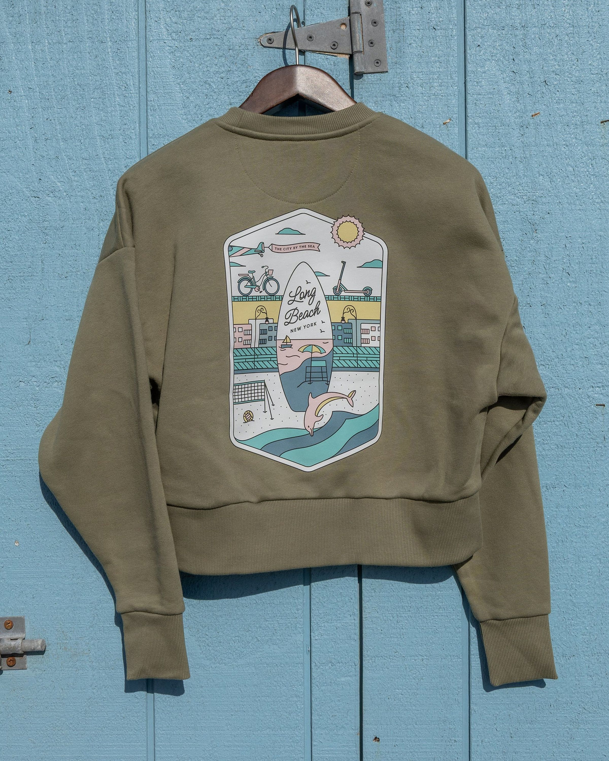 Olive Women's Heavyweight Crewneck - LBNY Lifestyle Heni