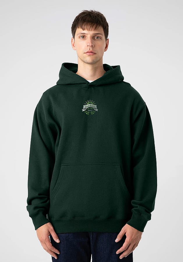 This super heavyweight hoodie is made of 10 oz./yd², 60/40 Airlume combed and ring-spun cotton/polyester fleece. It features an oversized relaxed fit, unisex silhouette, and brushed fleece interior.