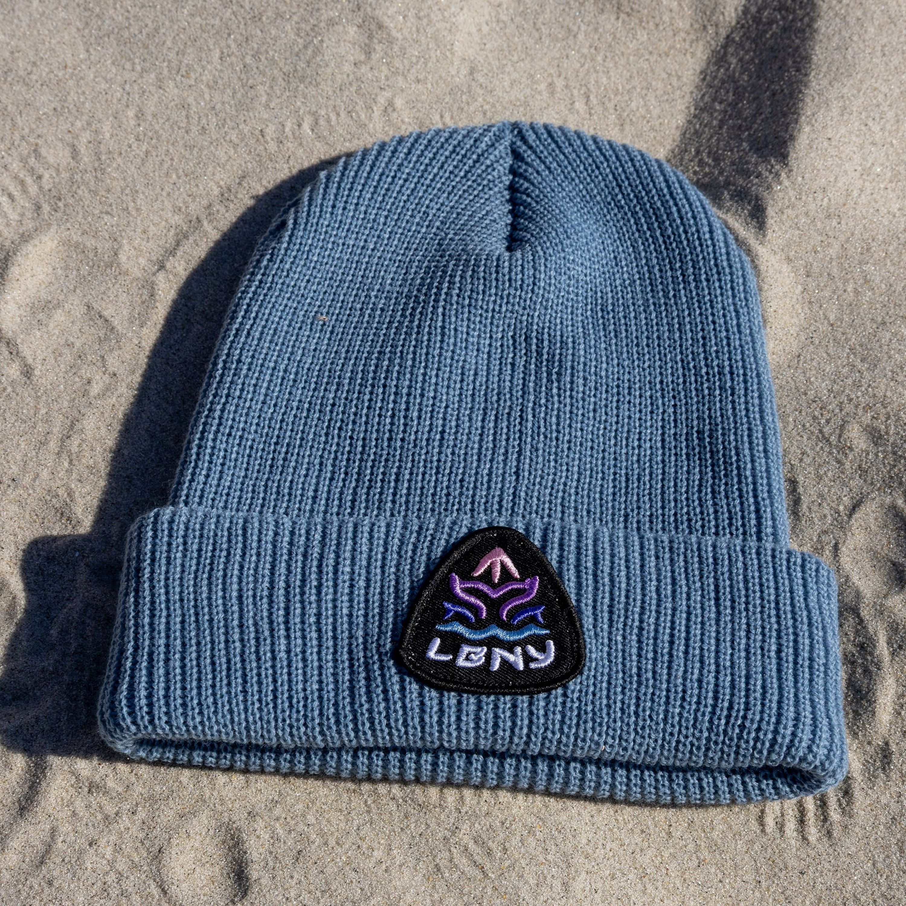Classic ribbed cuff beanie. Super soft, 100% acrylic. Locally hand-sewn Apex Nightfall Patch. LB Wave logo embroidery on the left side.