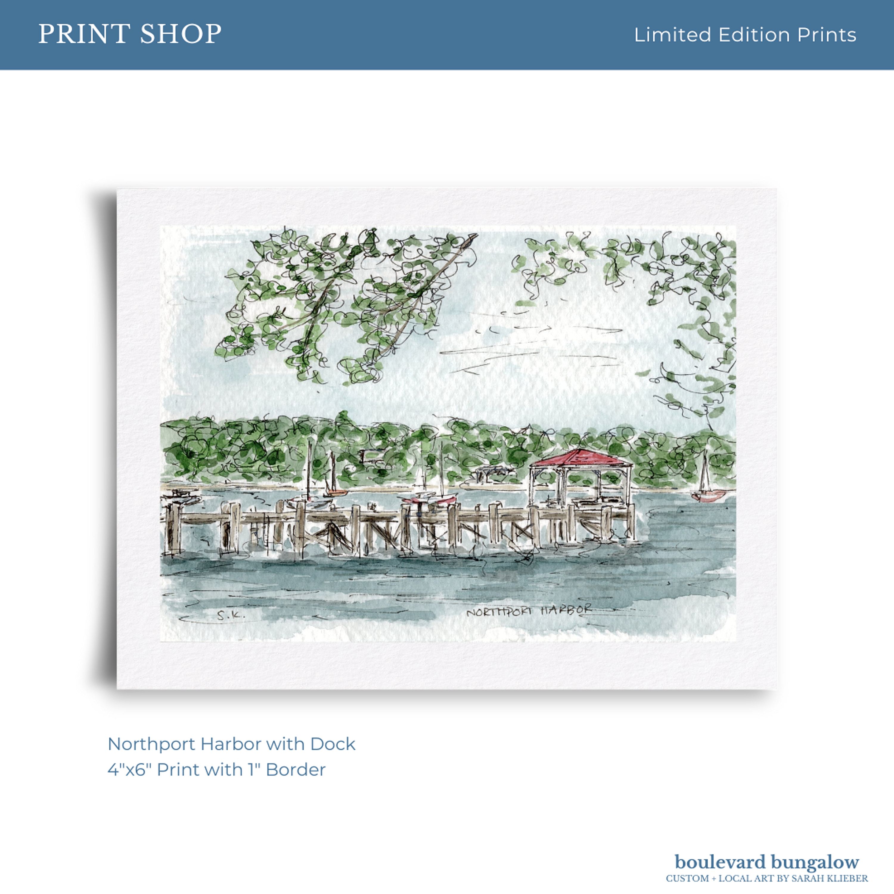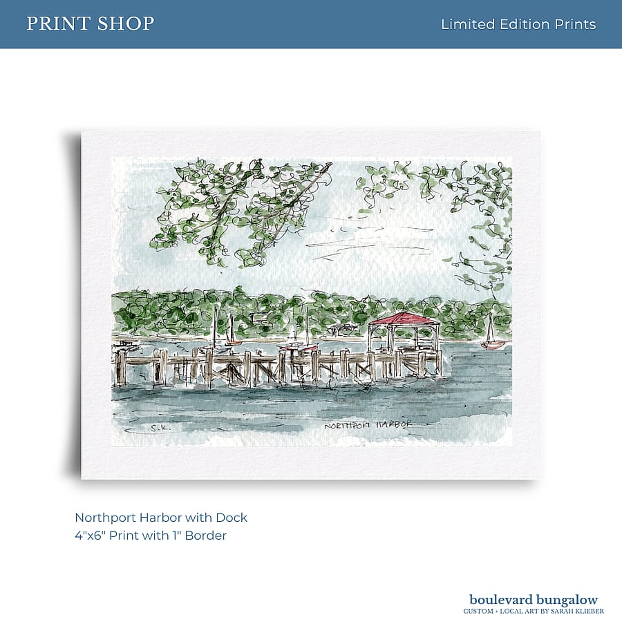 A peaceful view of Northport Harbor, with the dock extending into calm waters—a perfect coastal scene.