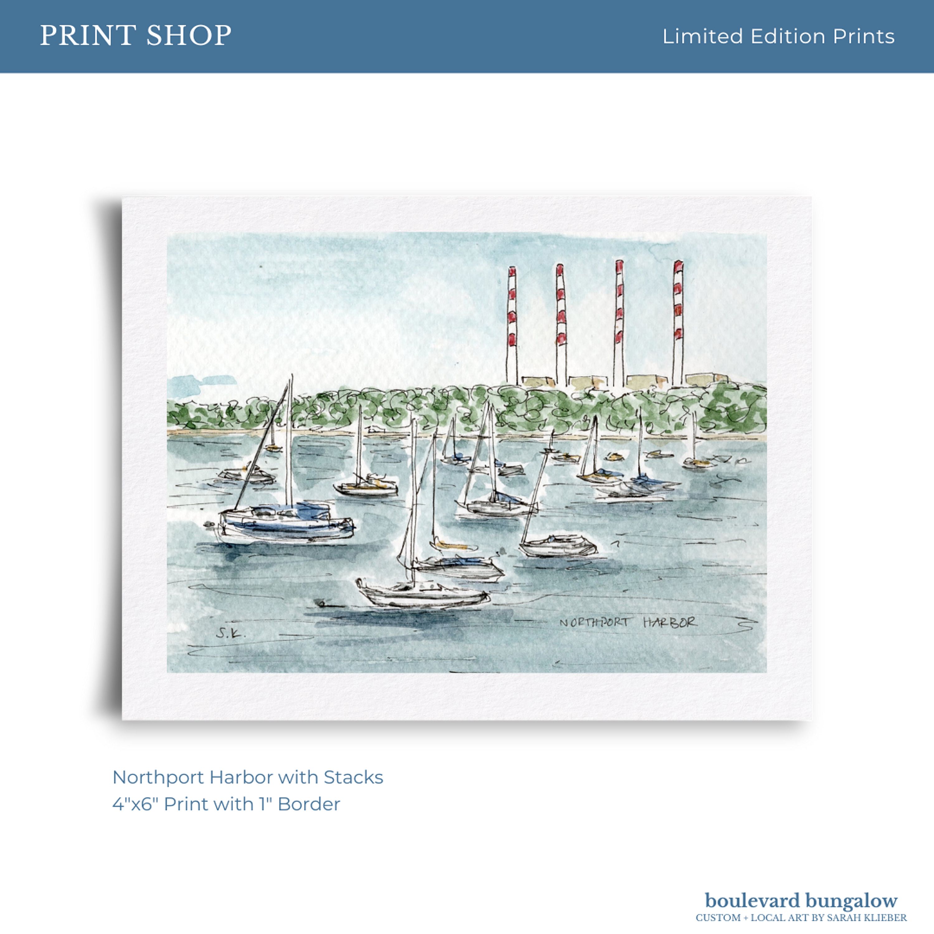 Celebrate Northport’s maritime heritage with this view highlighting the classic waterfront stacks and serene harbor.