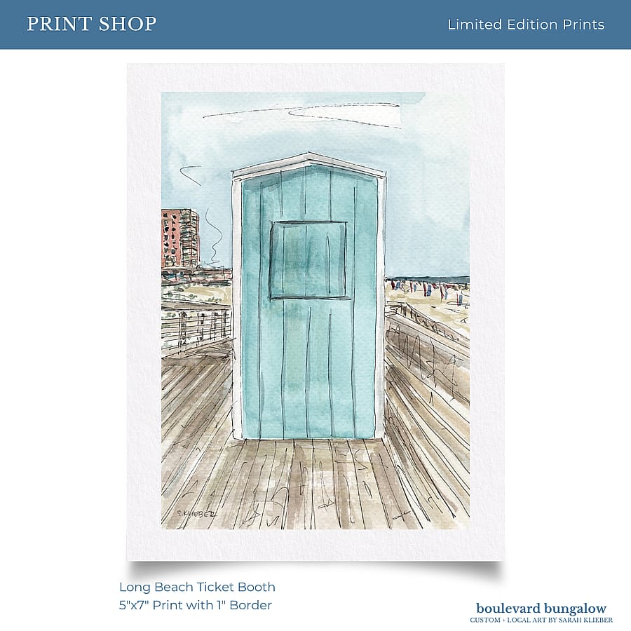 A classic Long Beach landmark, this print highlights the beloved boardwalk ticket booth in timeless style.