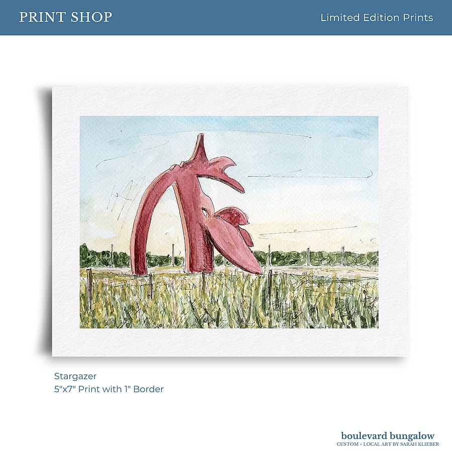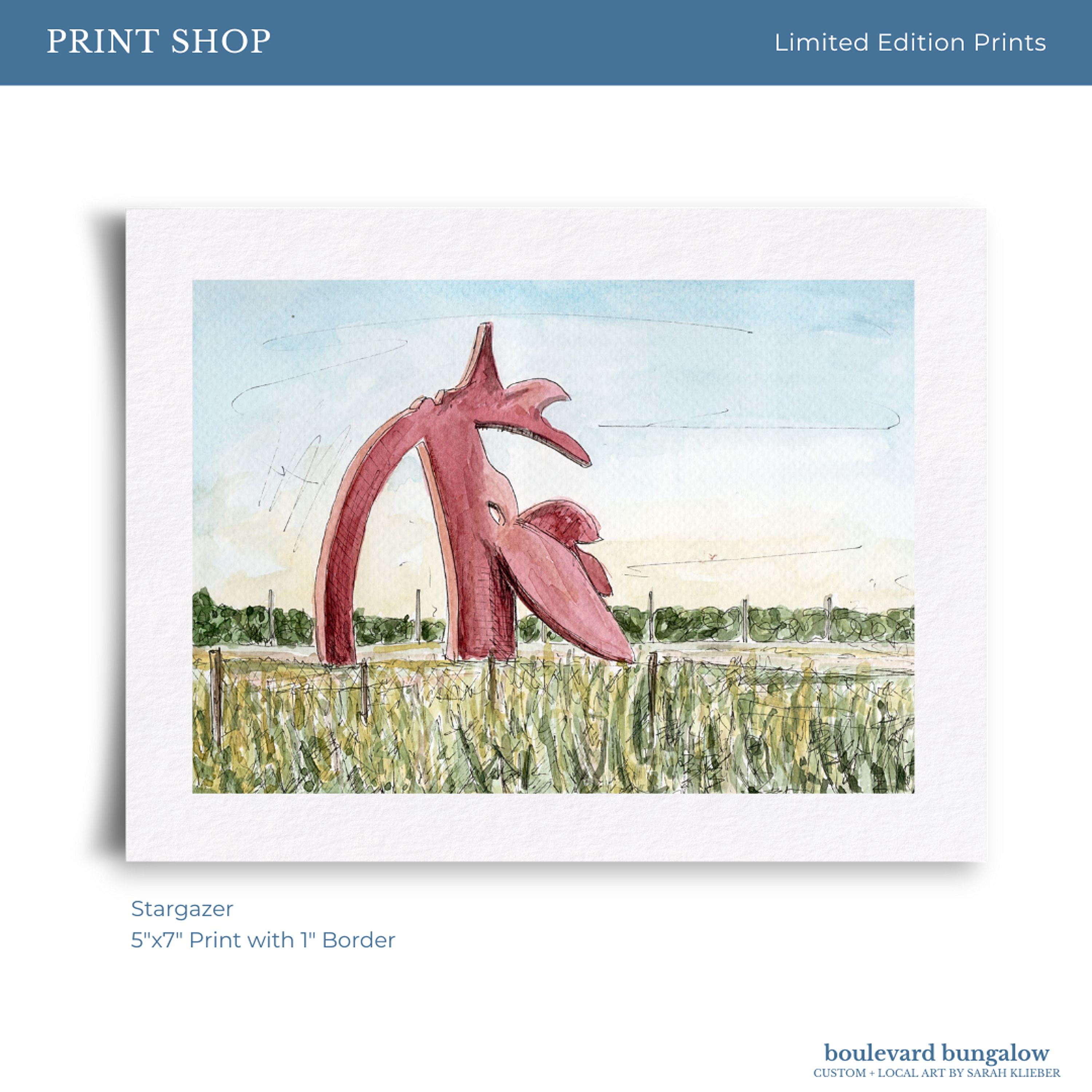 Celebrate a unique piece of Long Island culture with this print inspired by the iconic Stargazer roadside sculpture in Manorville — a soaring deer figure gazing toward the sky, symbolizing a hopeful spirit and marking the entrance to the Hamptons.