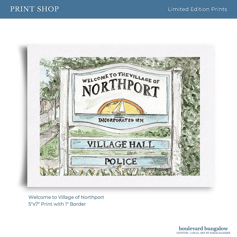 A charming welcome to Northport Village, featuring the iconic sign loved by locals and visitors alike.