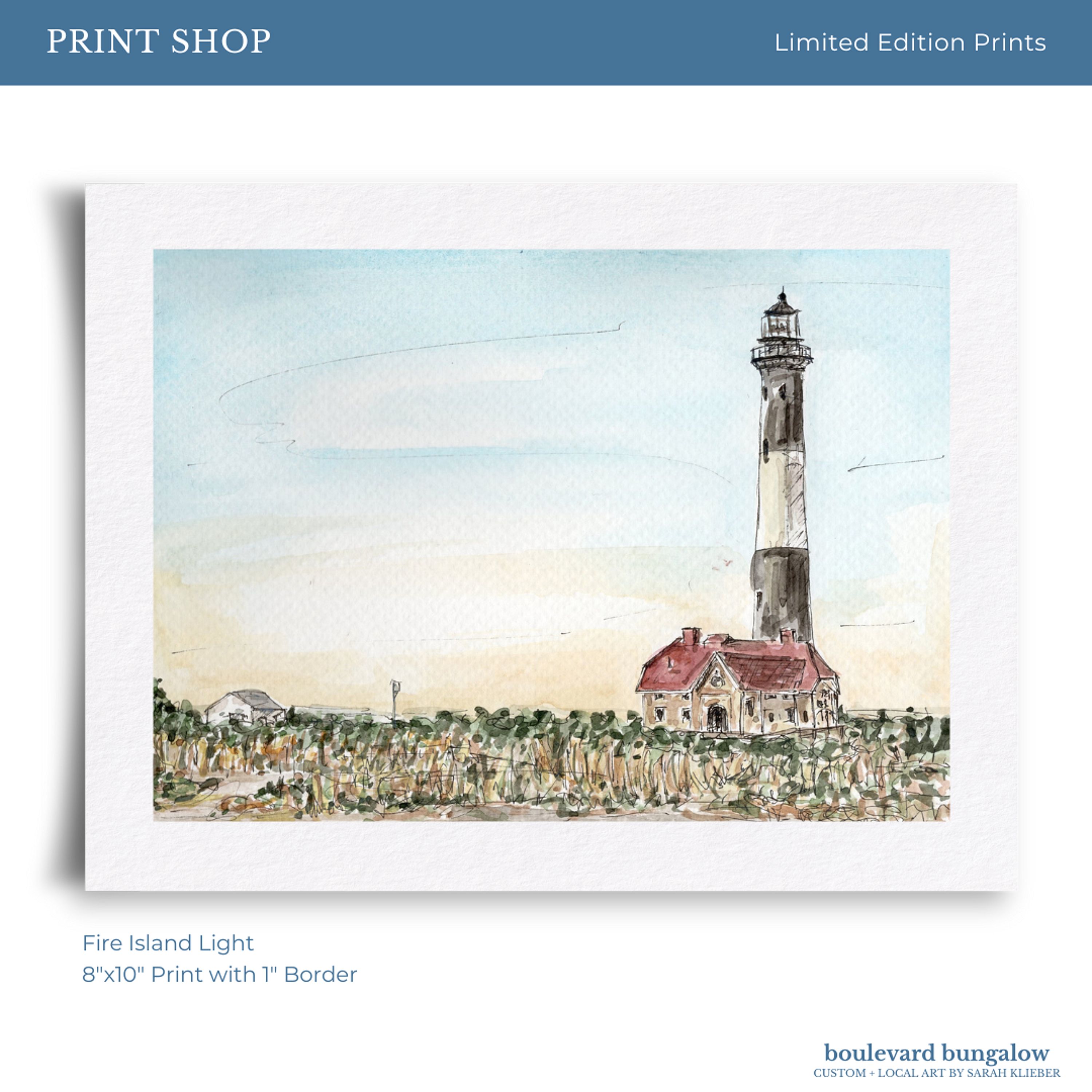 A striking depiction of Fire Island Lighthouse, standing tall along Long Island’s southern shore and capturing its iconic coastal presence.