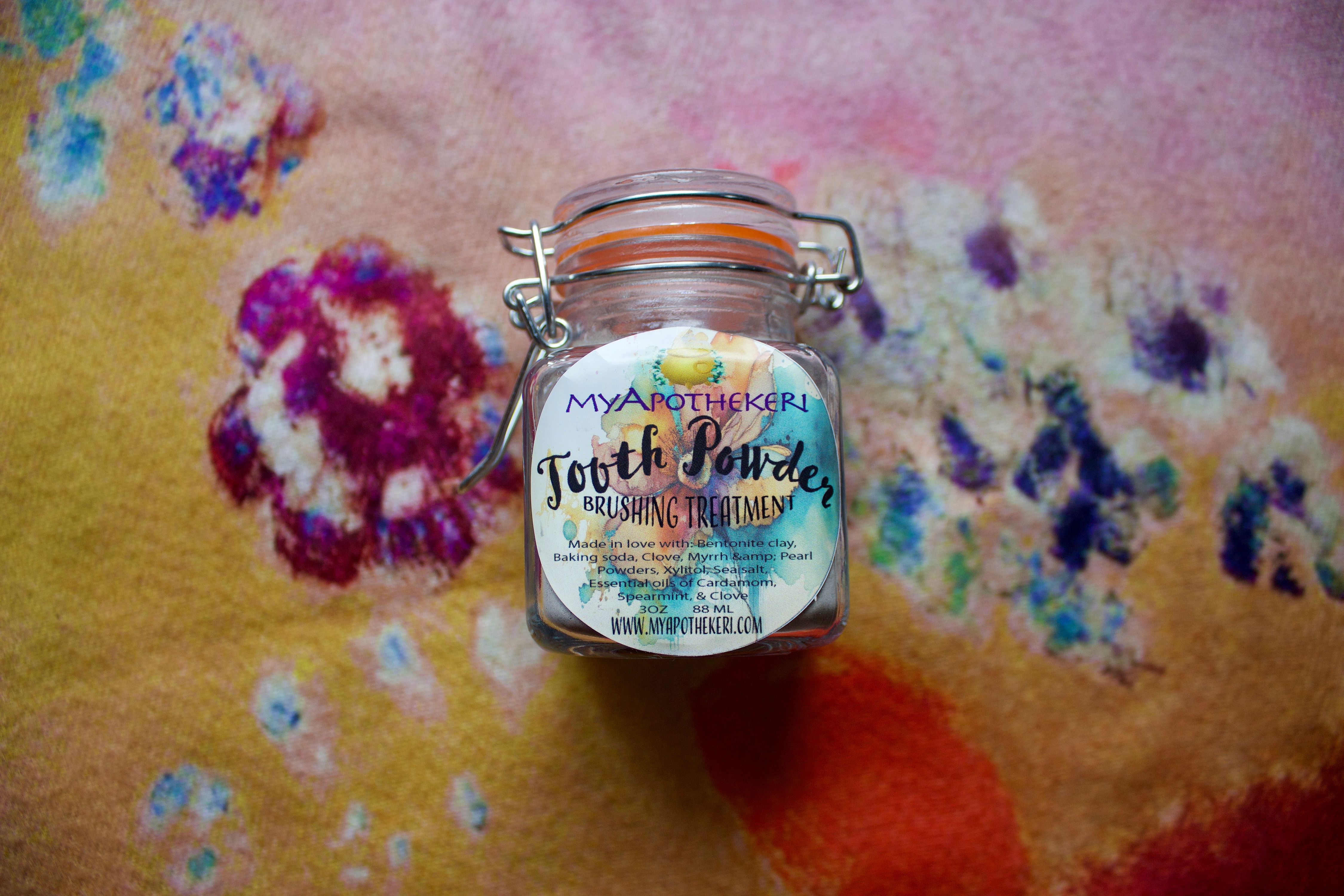 Made in love with organic ingredients: Bentonite Clay, Baking Soda, Myrrh & Pearl Powders, Sea Salt, & Essential oils of: Cardamom, Spearmint, & Clove.