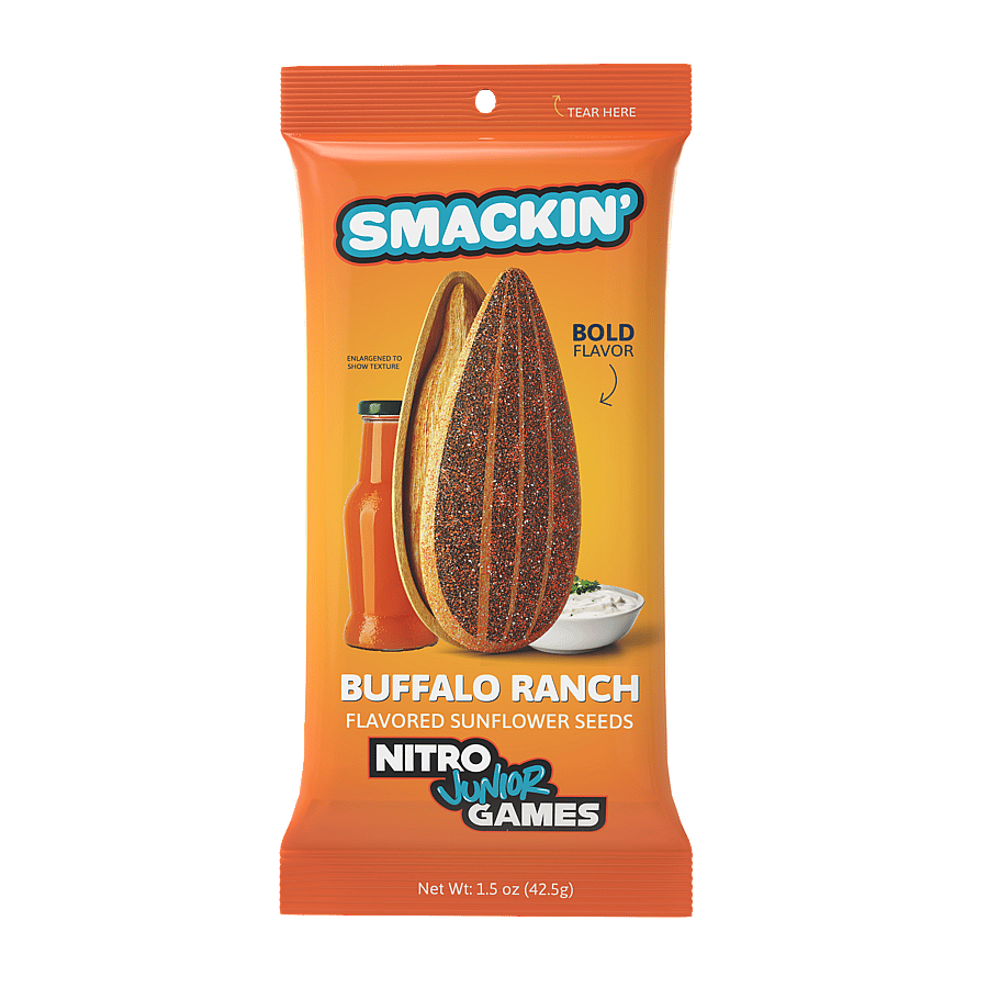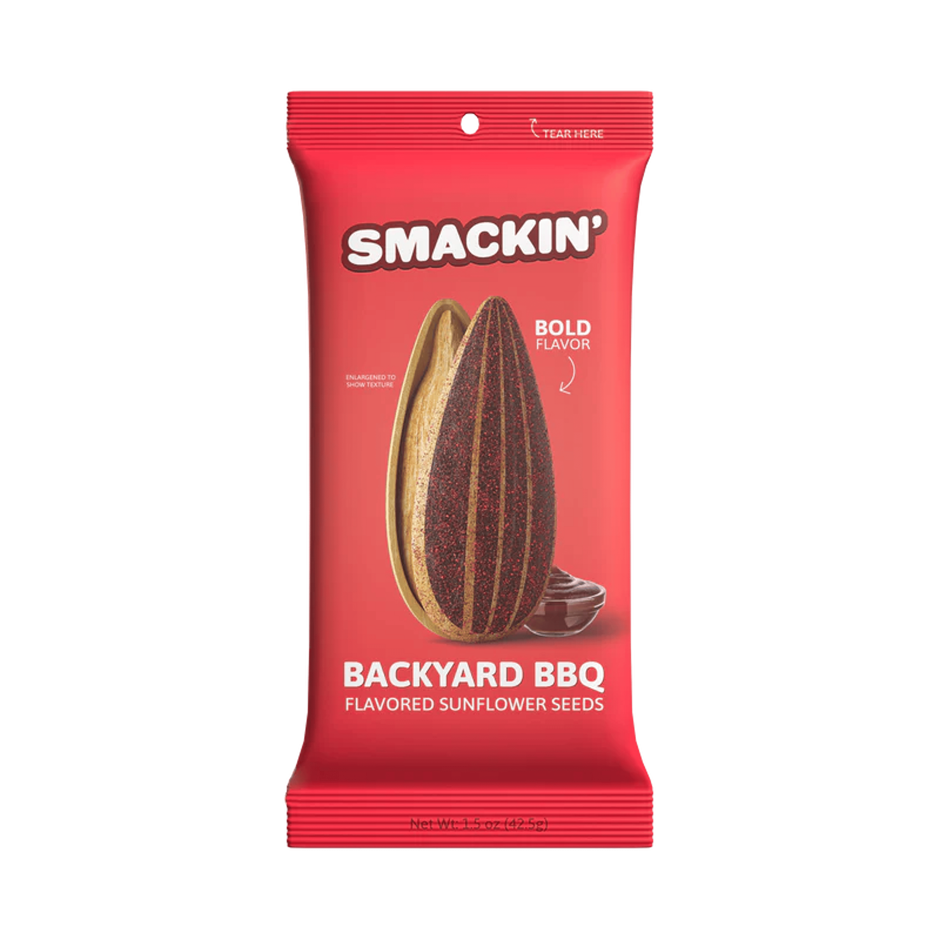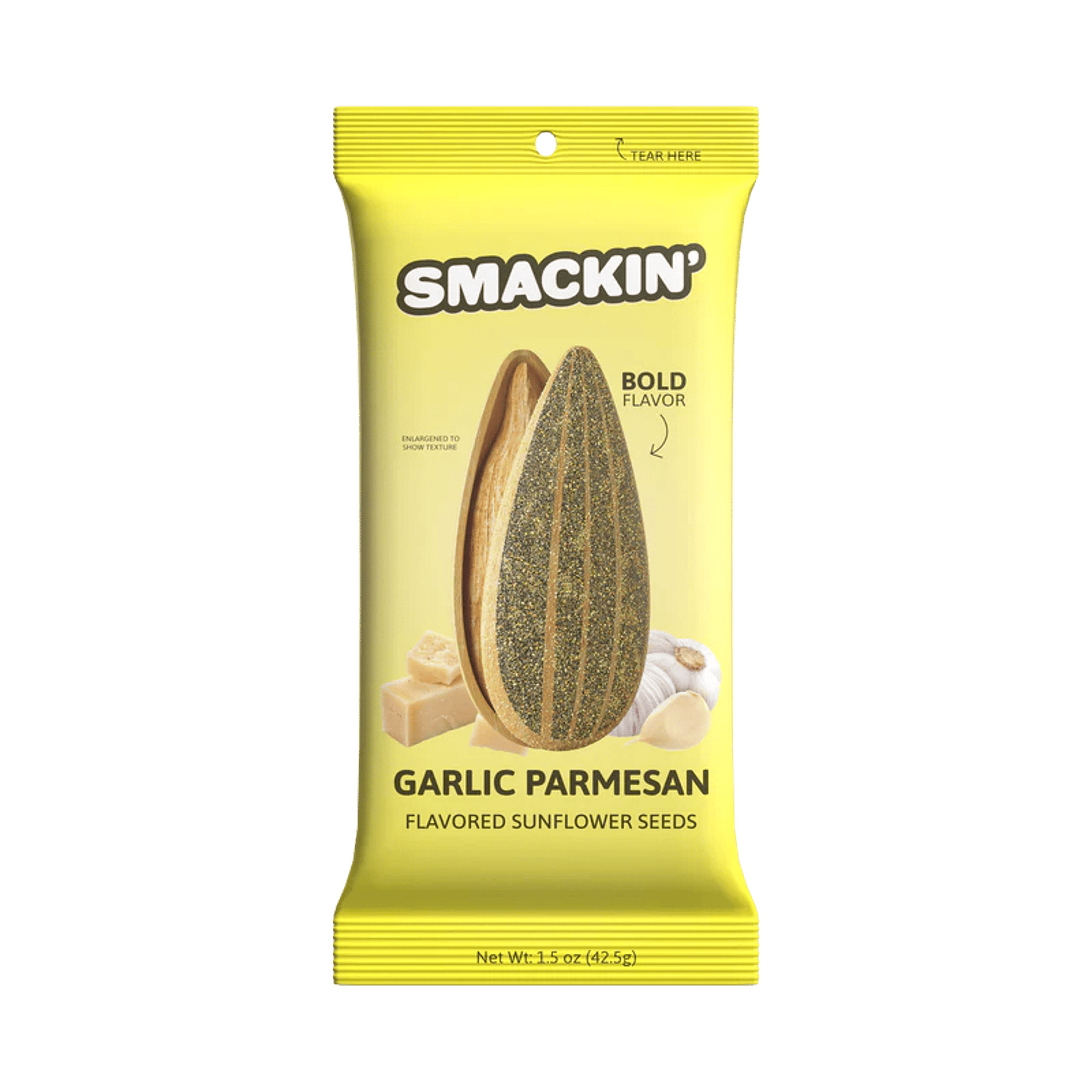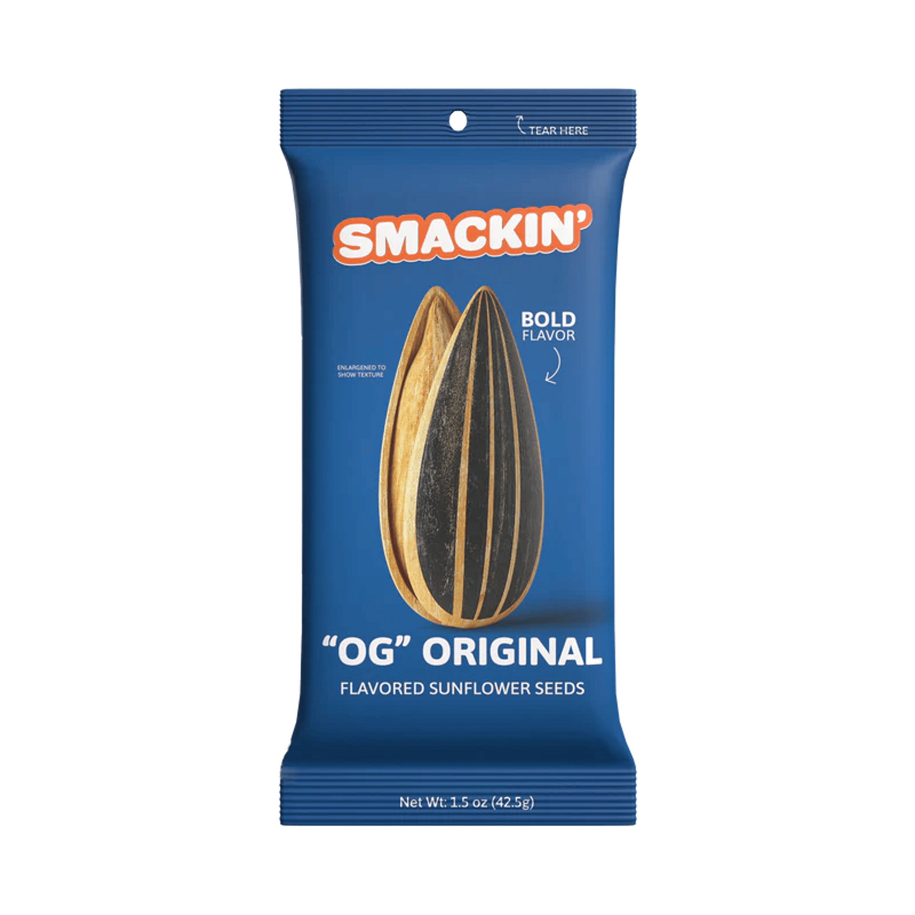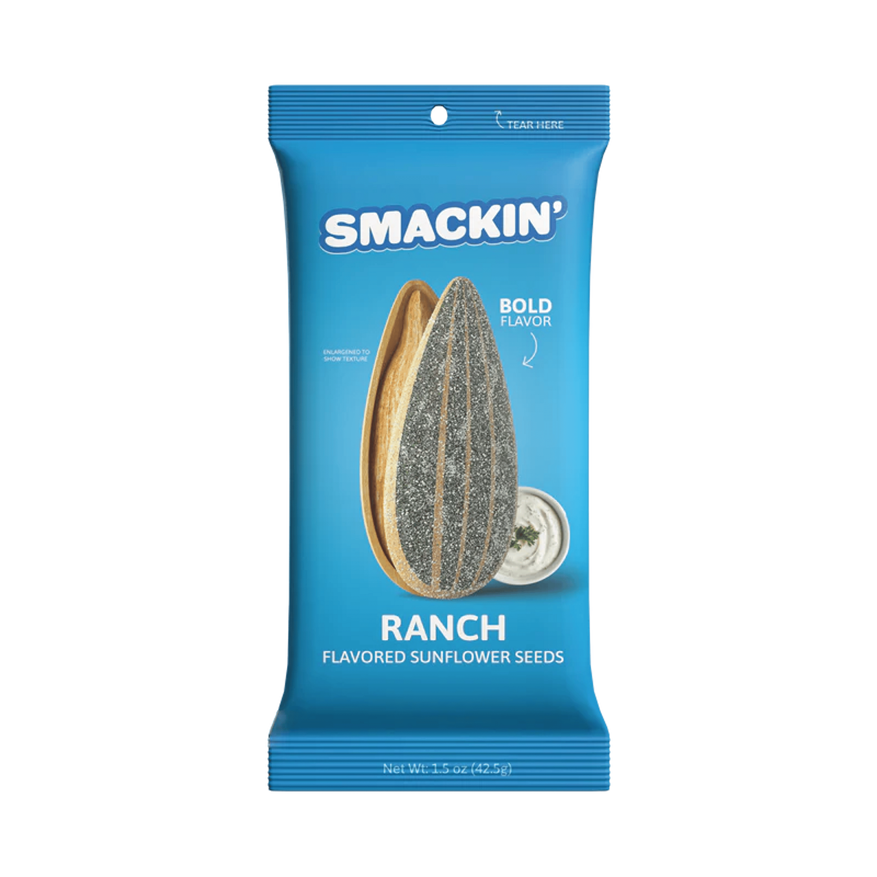 Smackin' Sunflower Seeds deliver bold, creative flavor in every crunchy, in-shell bite. Each 1. 5oz bag is sold individually, so you can mix and match your favorite flavors or try something new with every order. Whether you're into sweet, spicy, savory, or wild, there's a Smackin' flavor that'll keep your snack game strong. Perfect for athletes, game days, road trips, or everyday munching, these seeds bring big taste in a perfectly portioned pack. Available Flavors (each sold separately, 1. 5oz bags): Ranch. Cracked Pepper. Garlic Parmesan. Cheddar Jalapeno. Dill Pickle. Churro. BBQ. OG (Original). Bacon. Cinnamon Roll. Pizza. Maple Brown Sugar. Guac. Salsa. Taco. Lemon Pepper.