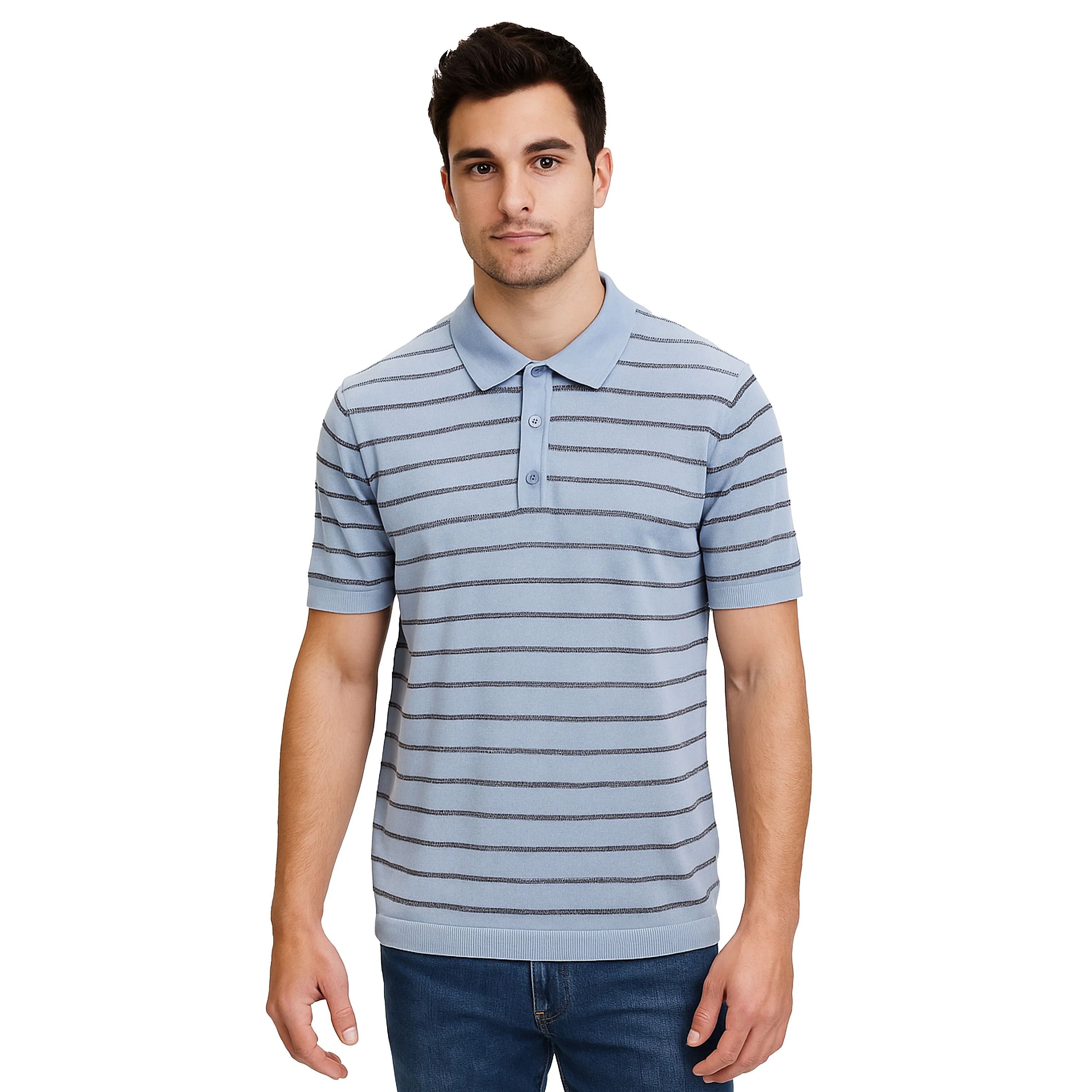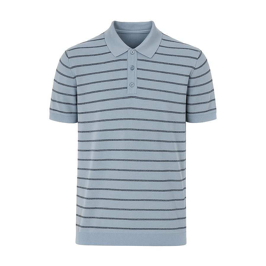 This is not a normal striped polo - with the attention to detail and unique stitching throughout, if you look or feel the softness of the organic cotton, you will also note that the horizontal contrasting stripes in brown are actually raised. Pair it with a dark dark brown khaki pant to complete the look.