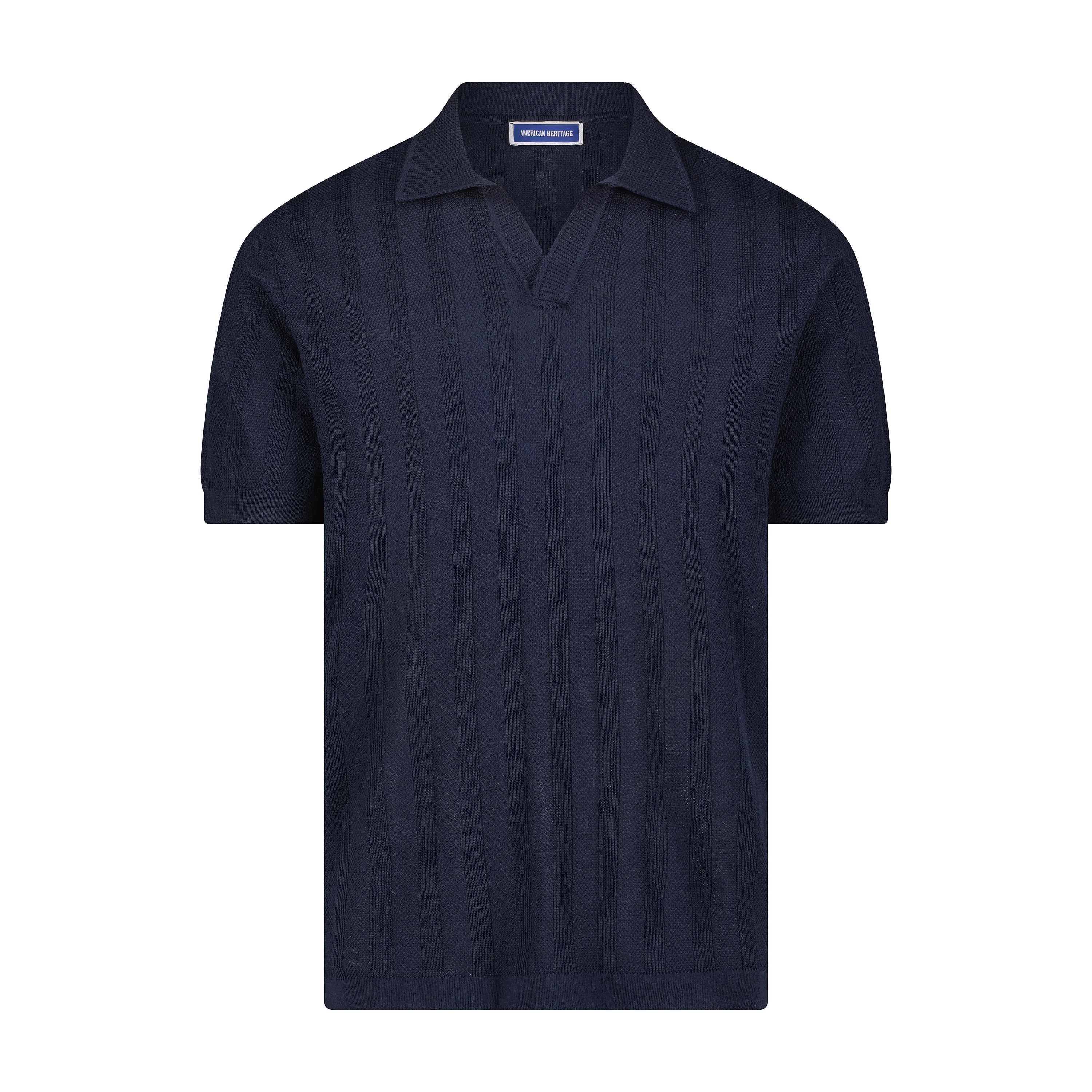 Enjoy our soft and comfortable johnny collar polo with jacquard chanel vertical stripes woven with our melange yarn. The subtle design allows the texture and the fabric to stand out when at an event or at the resort with friends. The perfect resort wear, this is a form fitting top that pairs well with a white linen short or a khaki pant.