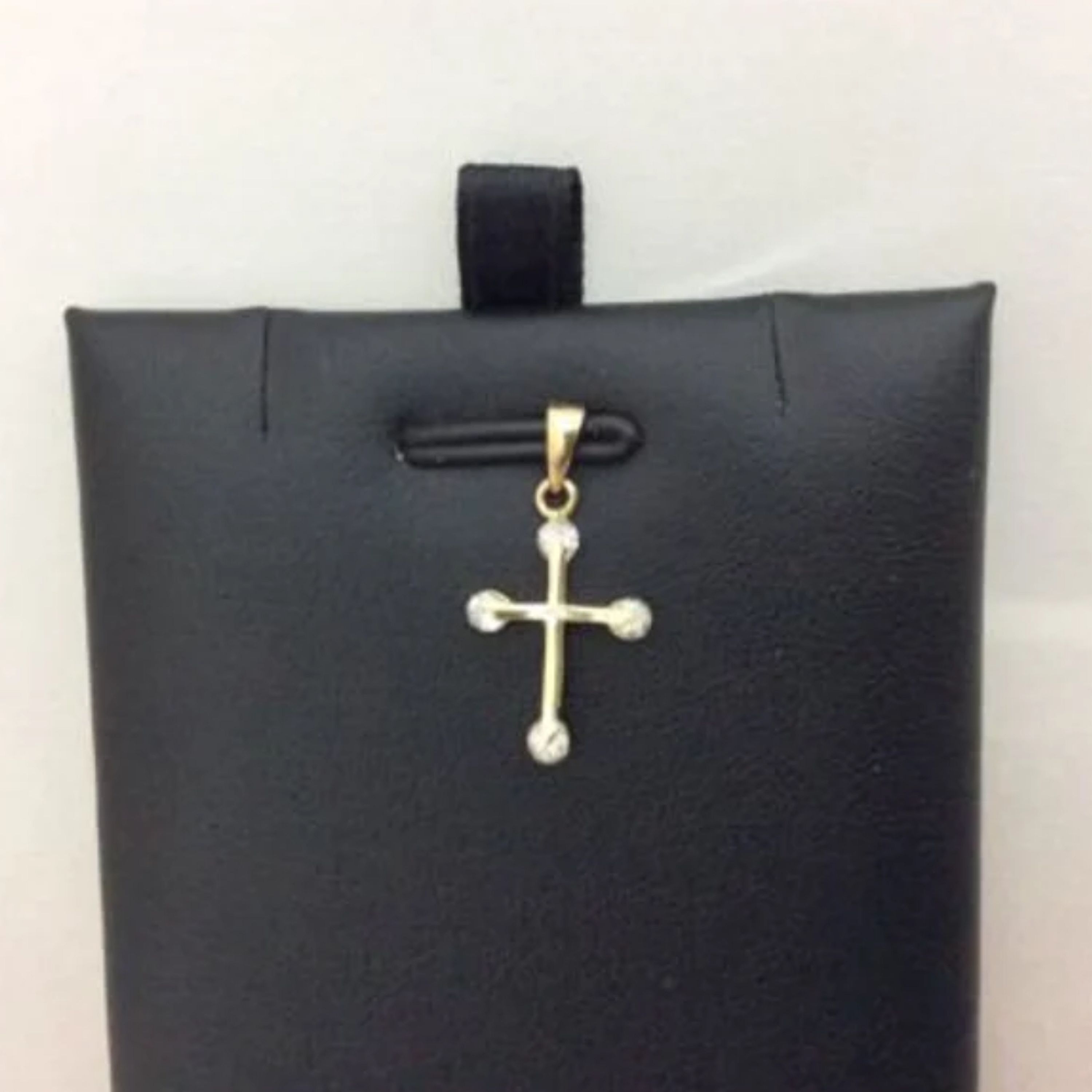 14K Real Yellow Gold Very small Cross Charm Pendant Cubic Zirconia Baby Children Metal Type: 14K Solid Yellow Gold Weight: .50 Grams Width: 1/4 Inch Wide Length: 3/4 Inches Long with bail STONE; .22CT OF CZ SI1 CLARITY COMES WITH A GIFT BOX