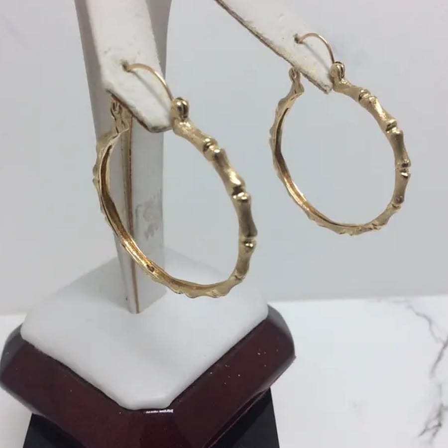 14K YELLOW Real Solid GOLD Bamboo HOOP EARRINGS 1 1/4'' 5.20 GRAMS