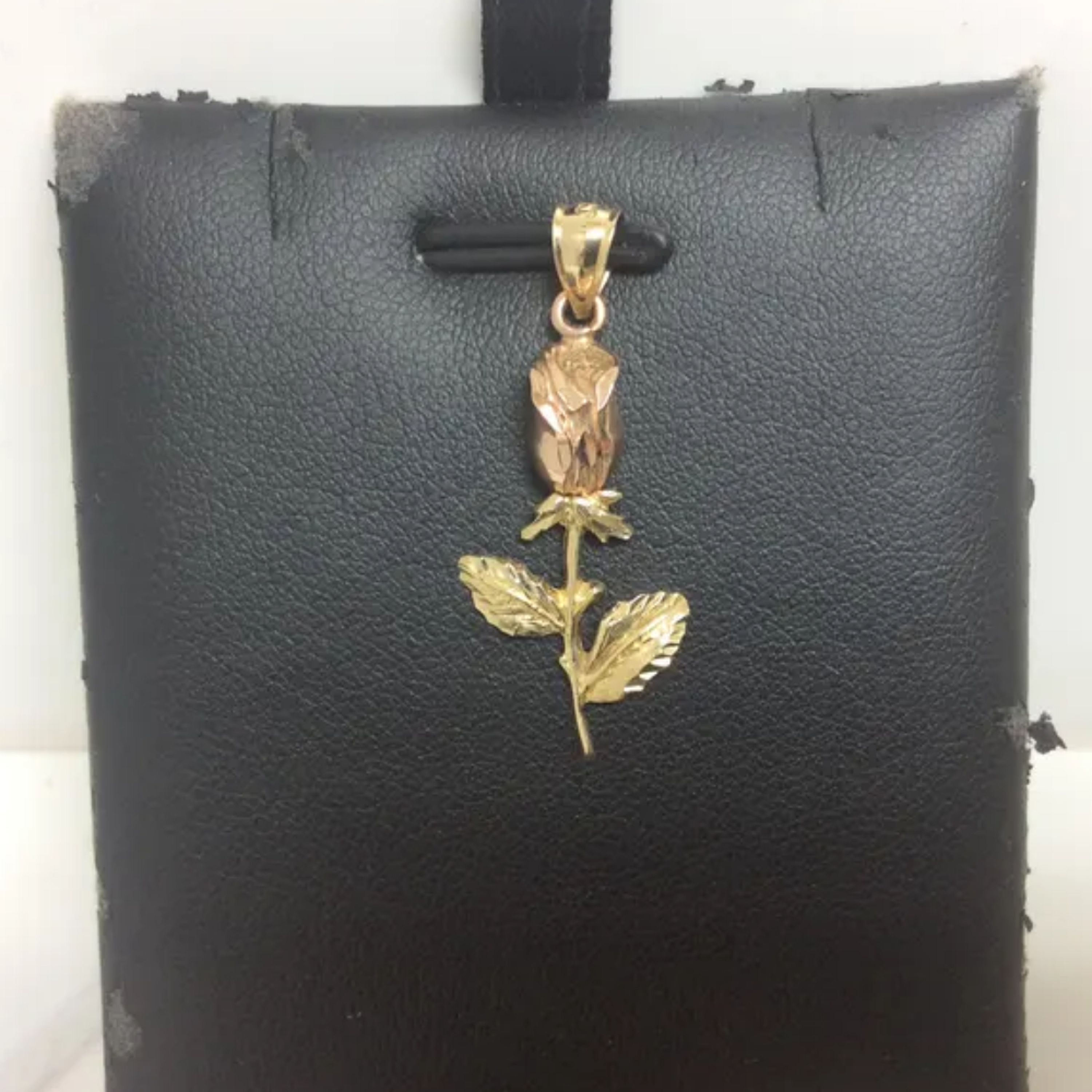 14K REAL SOLID YELLOW GOLD ROSE FLOWER CHARM PENDANT 1.60GR Metal Type: 14K Yellow Real Solid Gold Weight: 1.60 grams Width: 1/2 inch Length: 1 1/4 Inch Long with bail Comes with a Gift Box Retail $ 1599