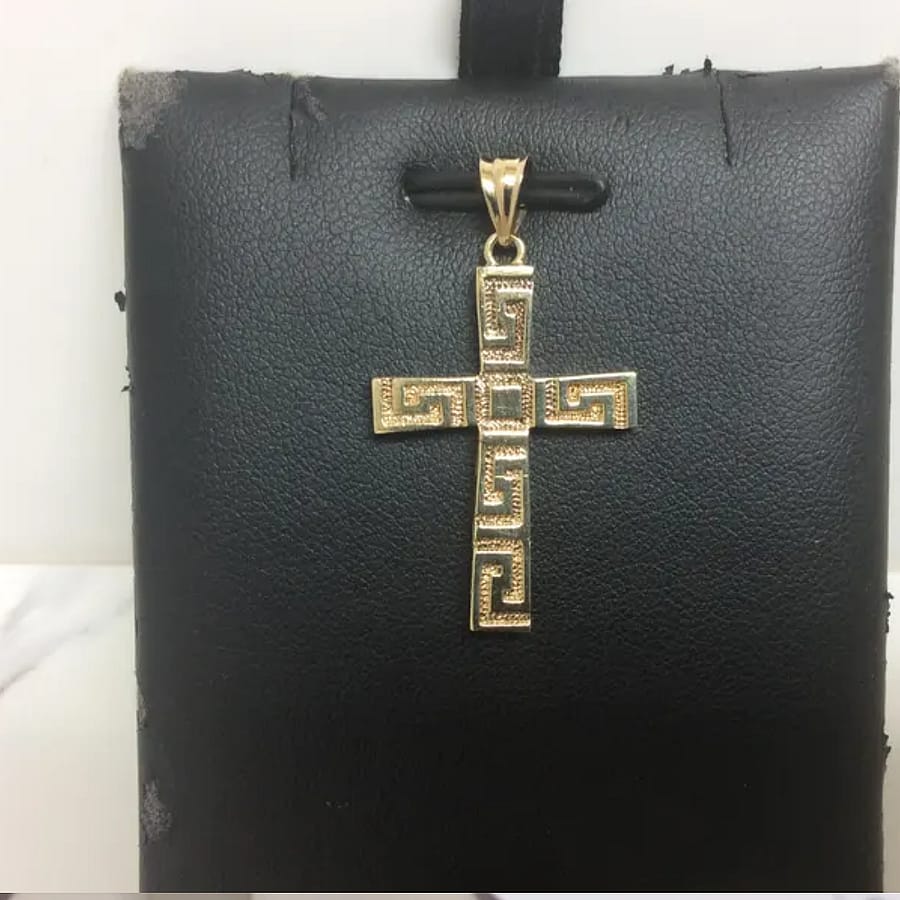 14k Solid Yellow Gold Cross Greek Key 2.2 Grams Religious Charm pendant