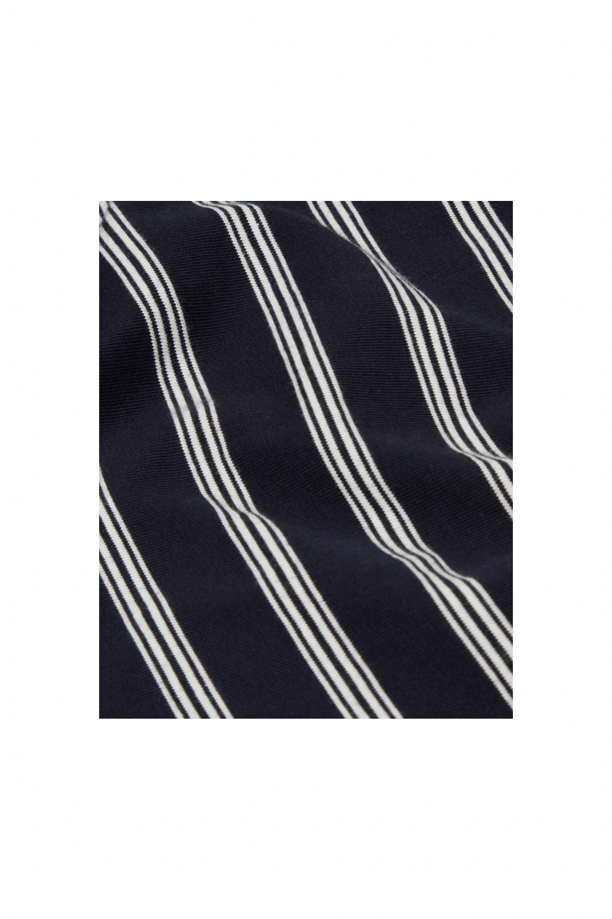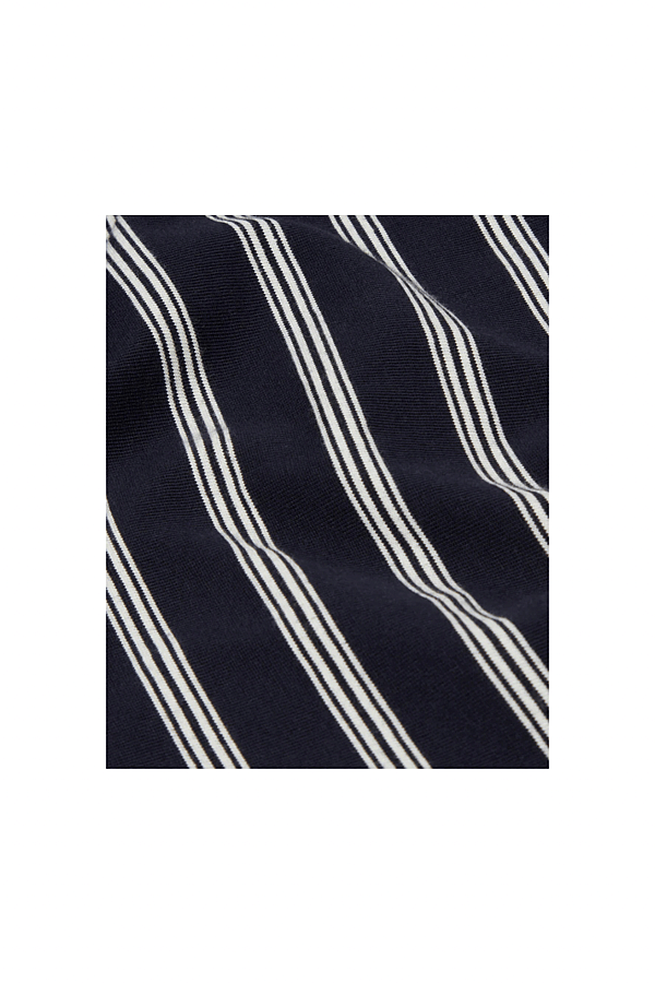 Made from a heavyweight 100% organic cotton in Navy/Ecru Stripe. Wear yours with our Kurt Trousers or Shorts.