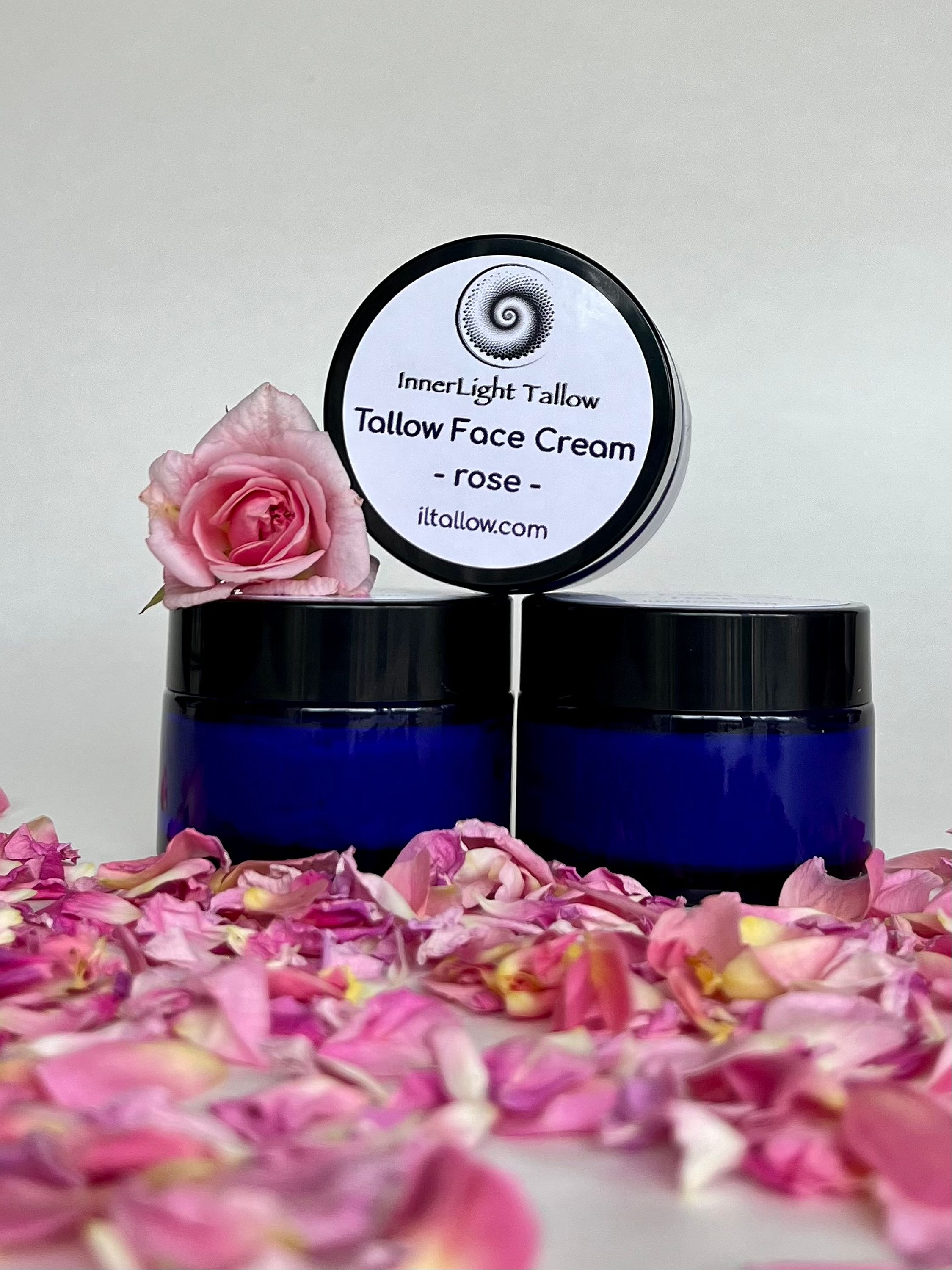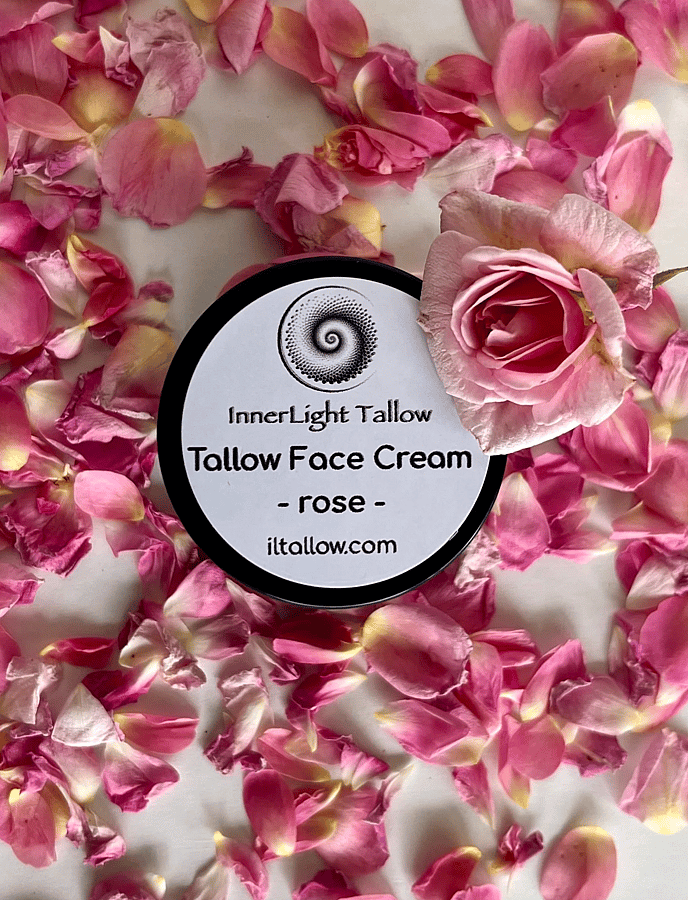 Face Love is a decadently hydrating face cream made with 100% grass fed beef suet tallow, sourced from small Sonoma County ranchers, organic rose hip oil, organic golden jojoba oil and organic Rose absolute oil.