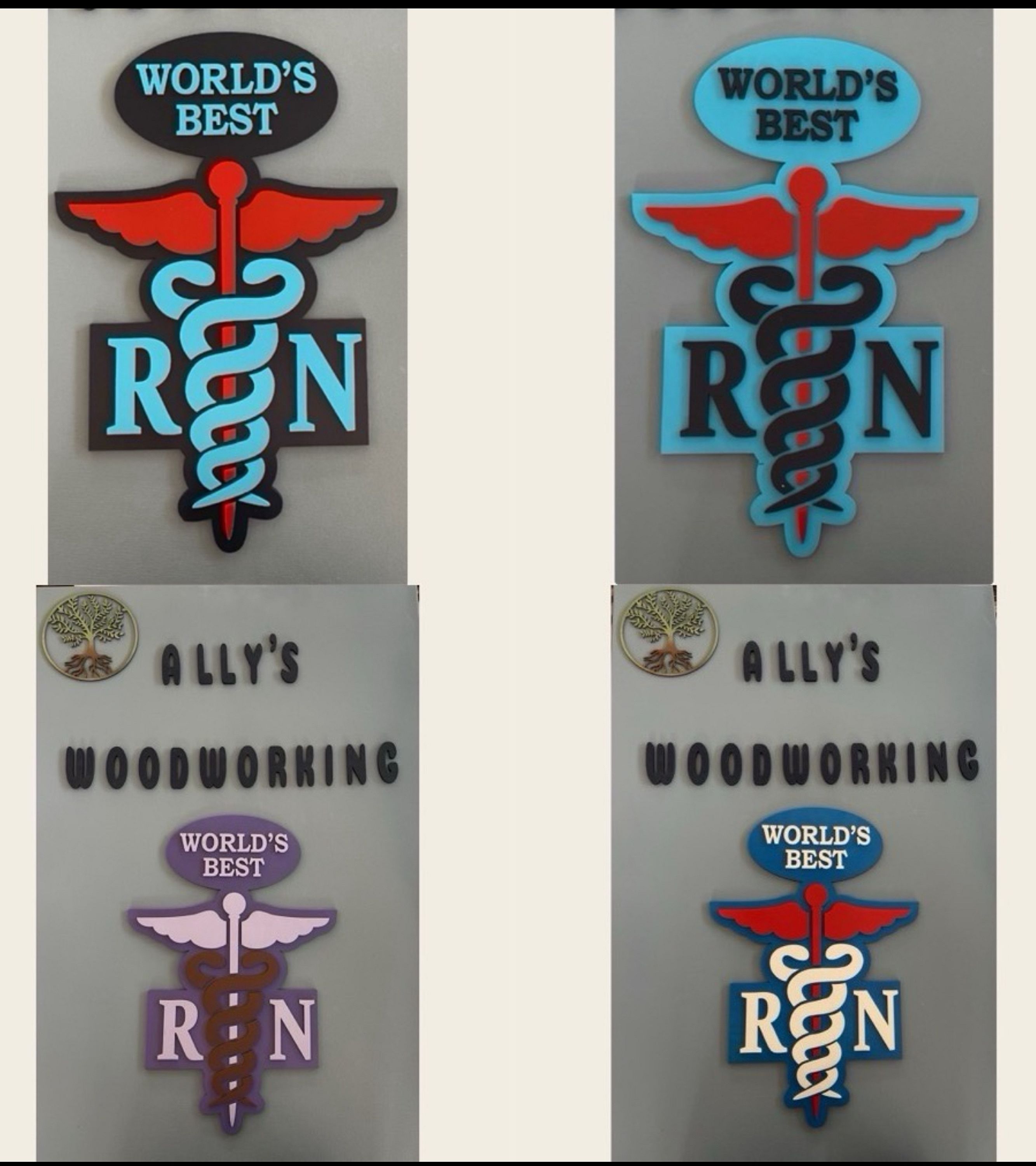World’s Best RN. wooden wall plaque in 4 different color schemes. Each sold separately.