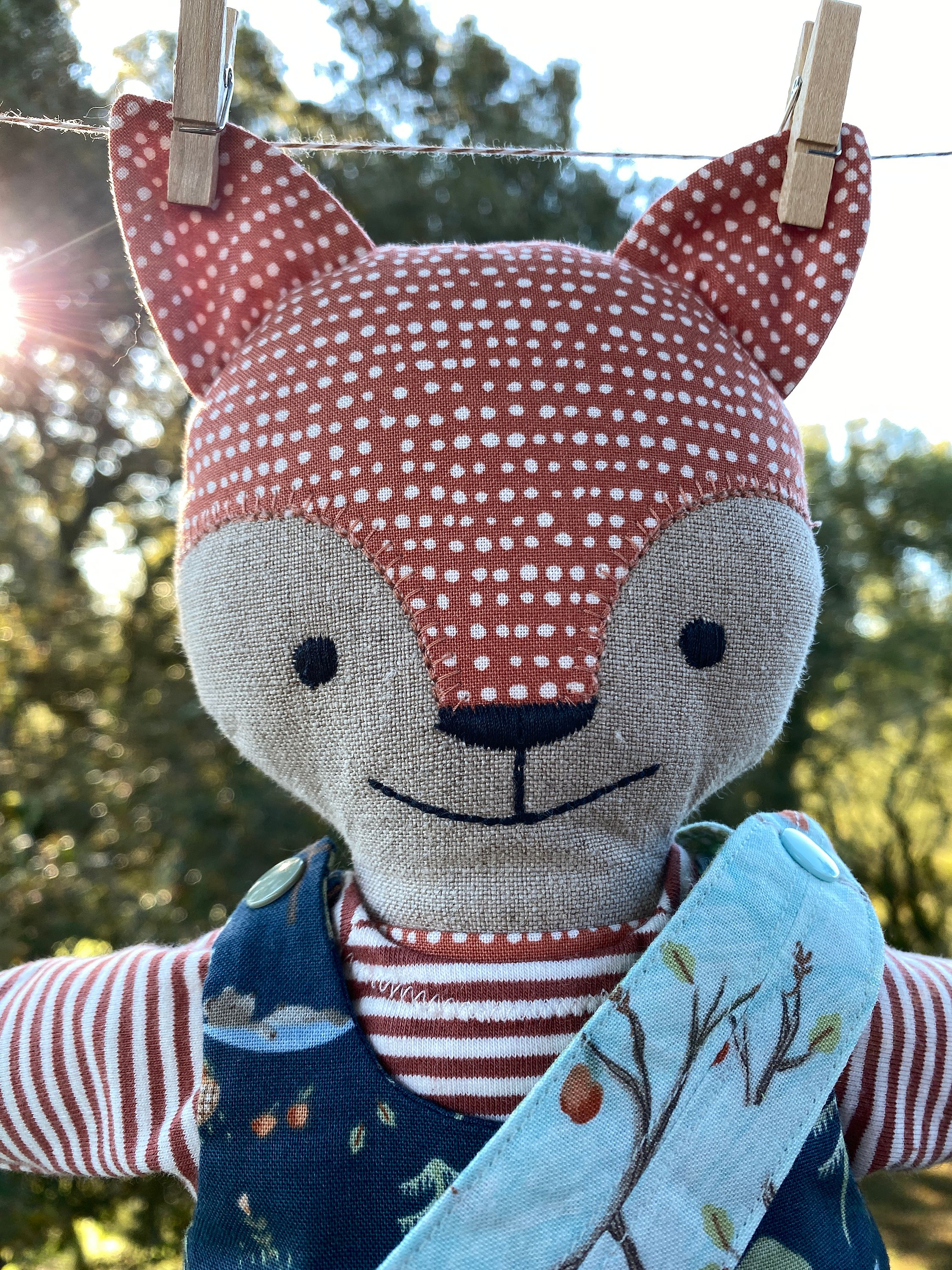 A one-of-a-kind handmade fox doll for children and collectors who love woodland themes, playful details, and beautifully made companions that invite imagination and storytelling.