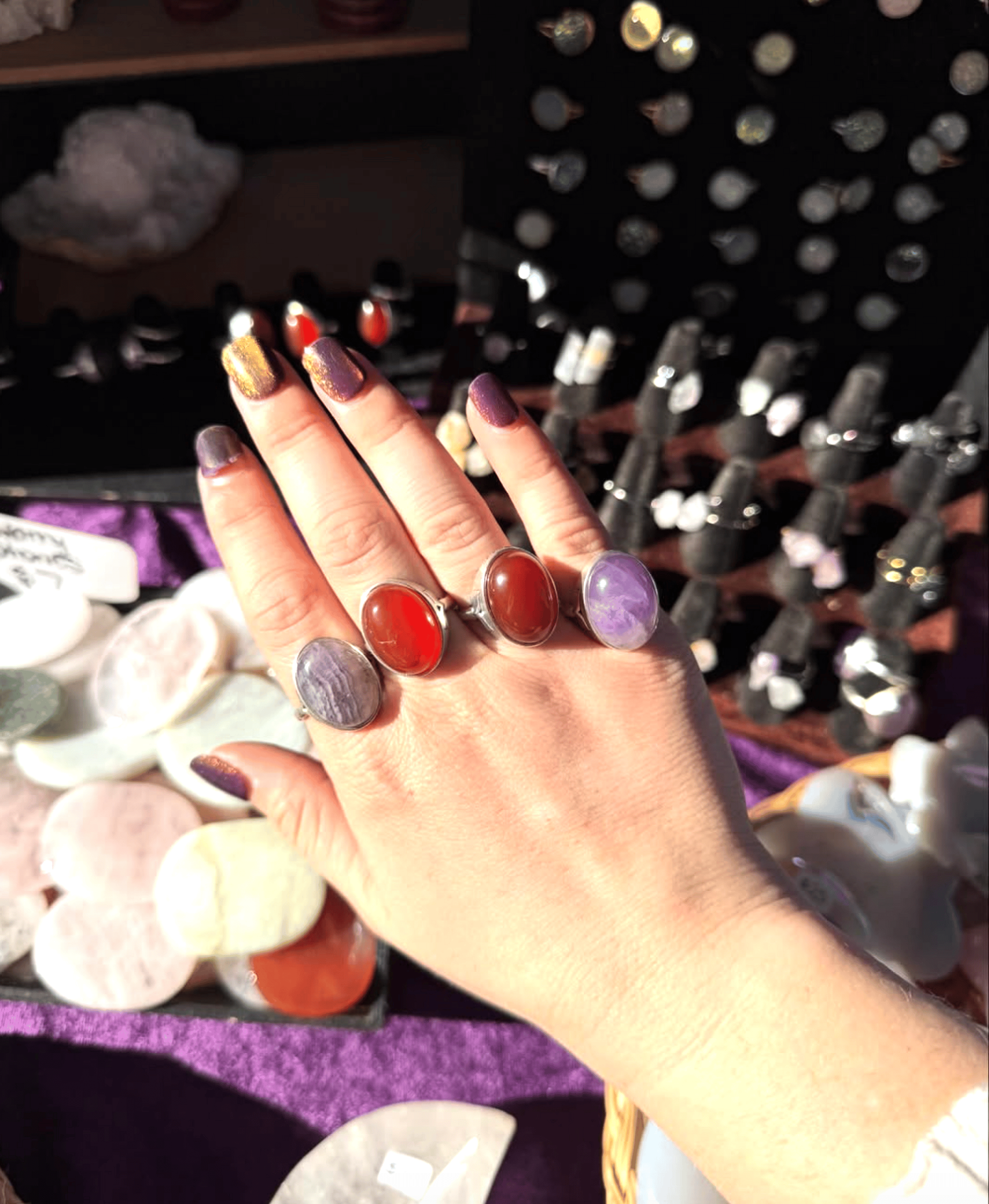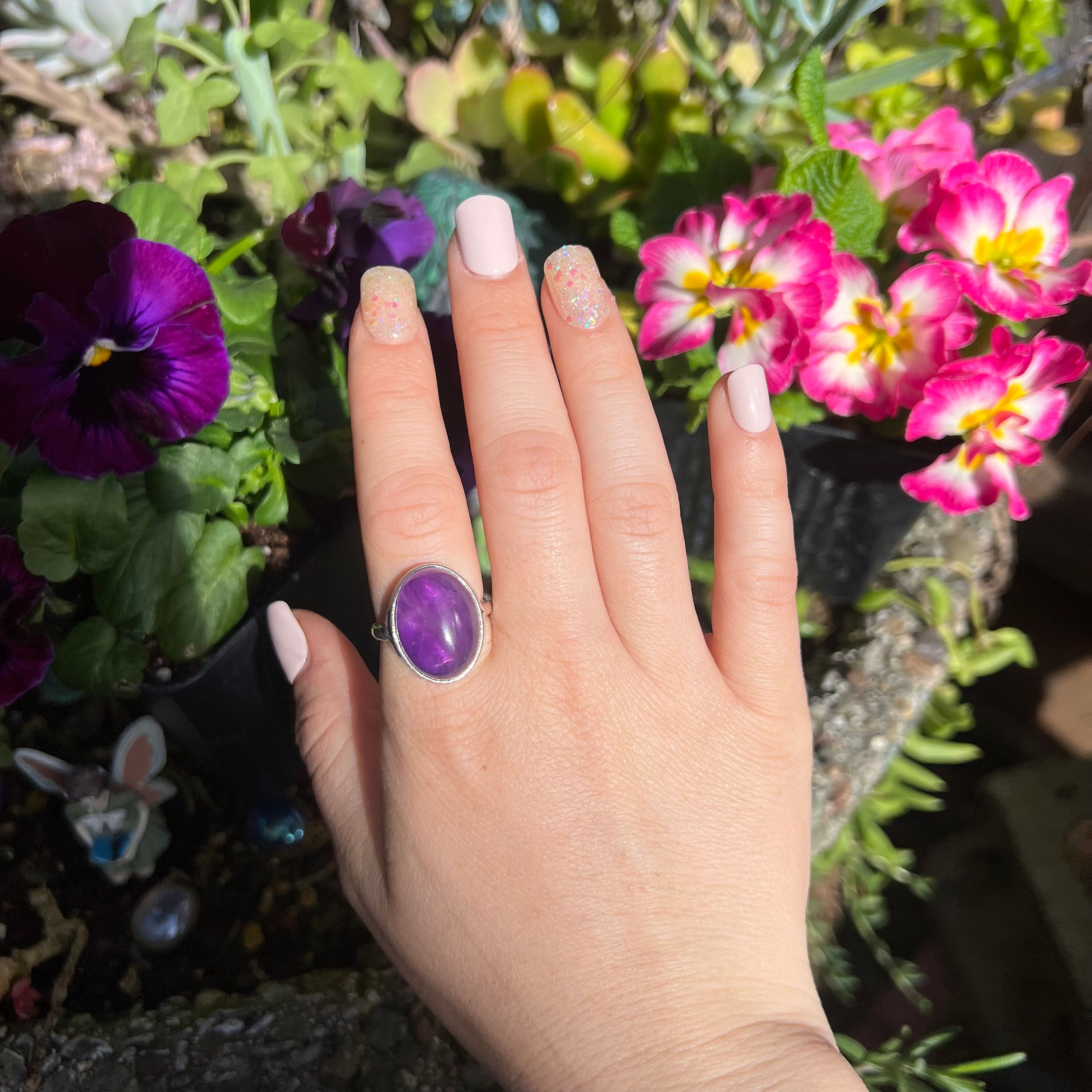 Amethyst or Carnelian Large Oval Ring Made with Zinc Alloy Antique Silver Rings, and a 18x13mm oval stone. All rings are a size 8/ 18mm All materials are lead and nickel free!