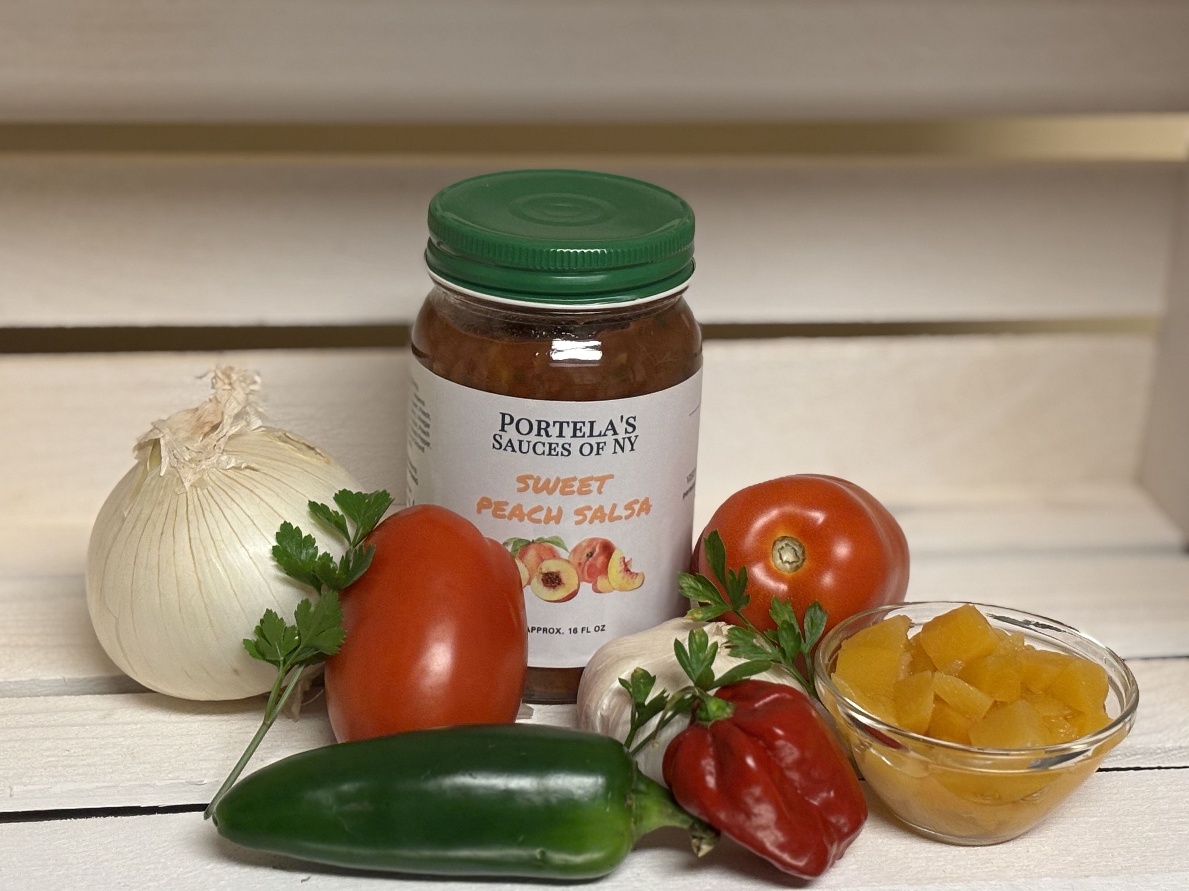 This is a refreshing salsa. With small chunks of fresh peaches. Great for dipping in chips and even a great topping to grilled chicken. Great addition to any gathering. Case item: 12-16oz