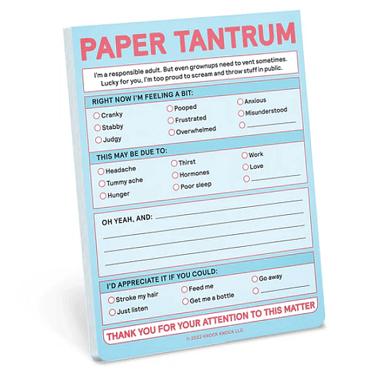 A humor‑filled notepad with Paper Tantrum attitude — perfect for jotting reminders, to‑dos, and everyday notes with a playful edge.