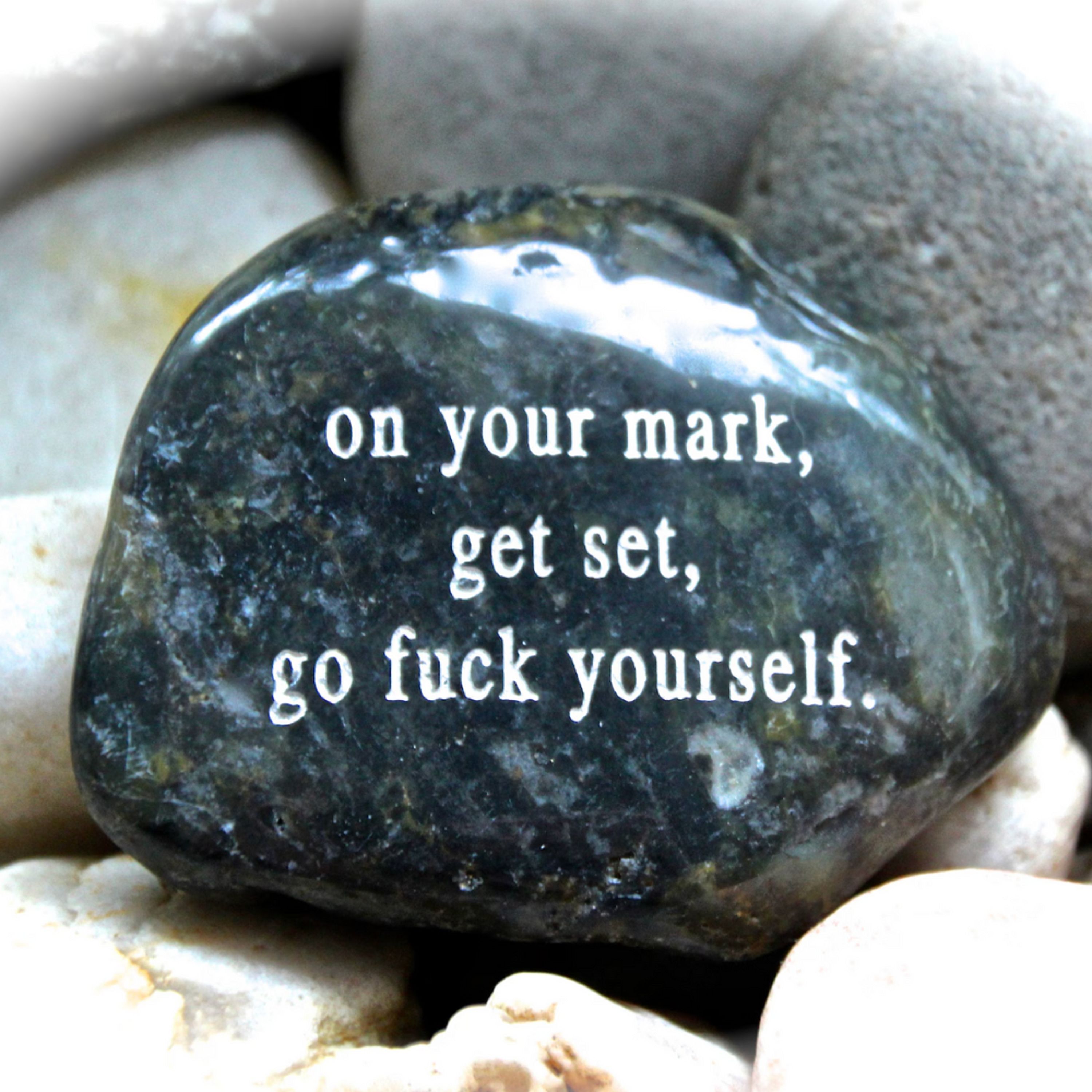 Bring a little irreverent humor to any space with this engraved rock featuring the quote: