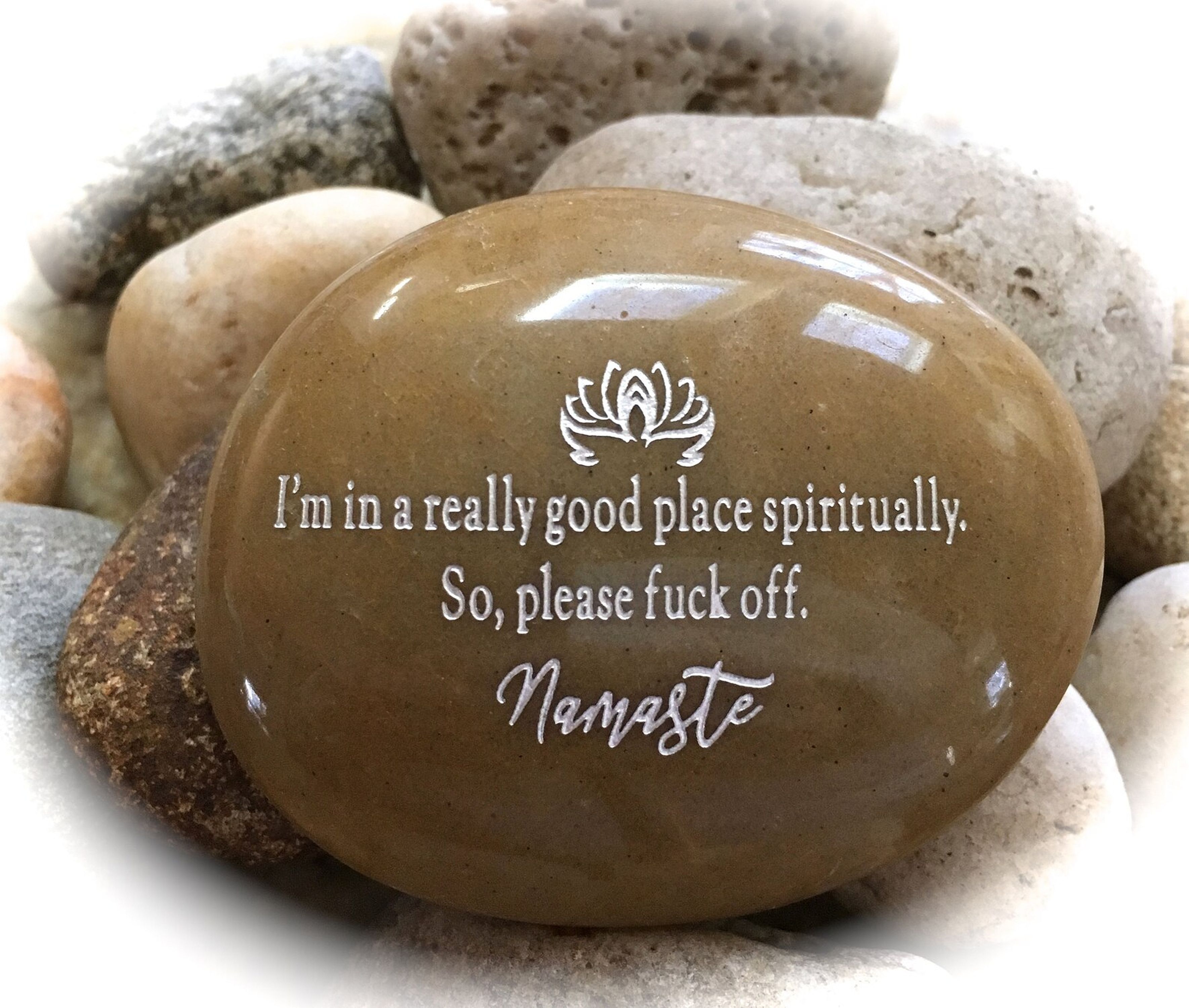 Bring a little irreverent humor to any space with this engraved rock featuring the quote: